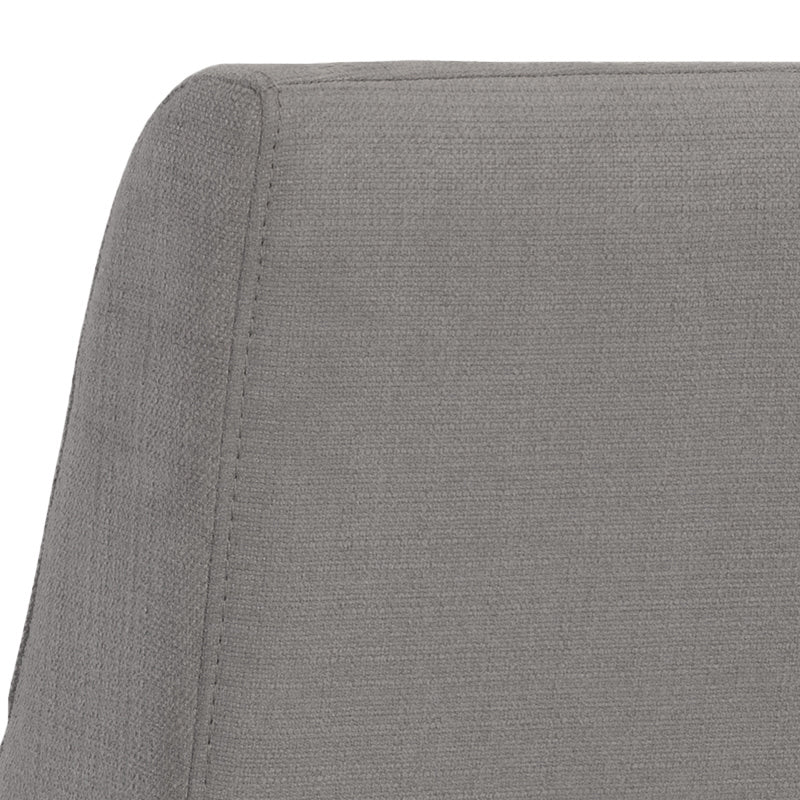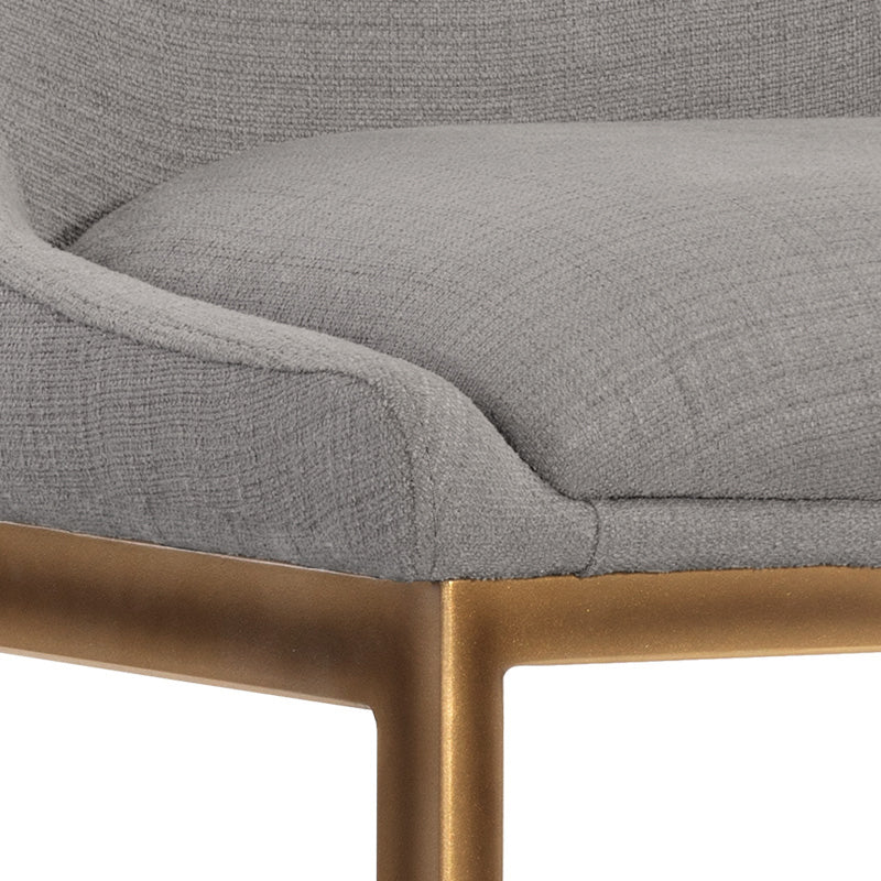 This counter stool features a classic cantilever design for a touch of elegance. Crafted with bold meg rust or gray fabric with a rustic bronze steel frame. Suitable for various dining, kitchen and bar spaces of all sizes.
