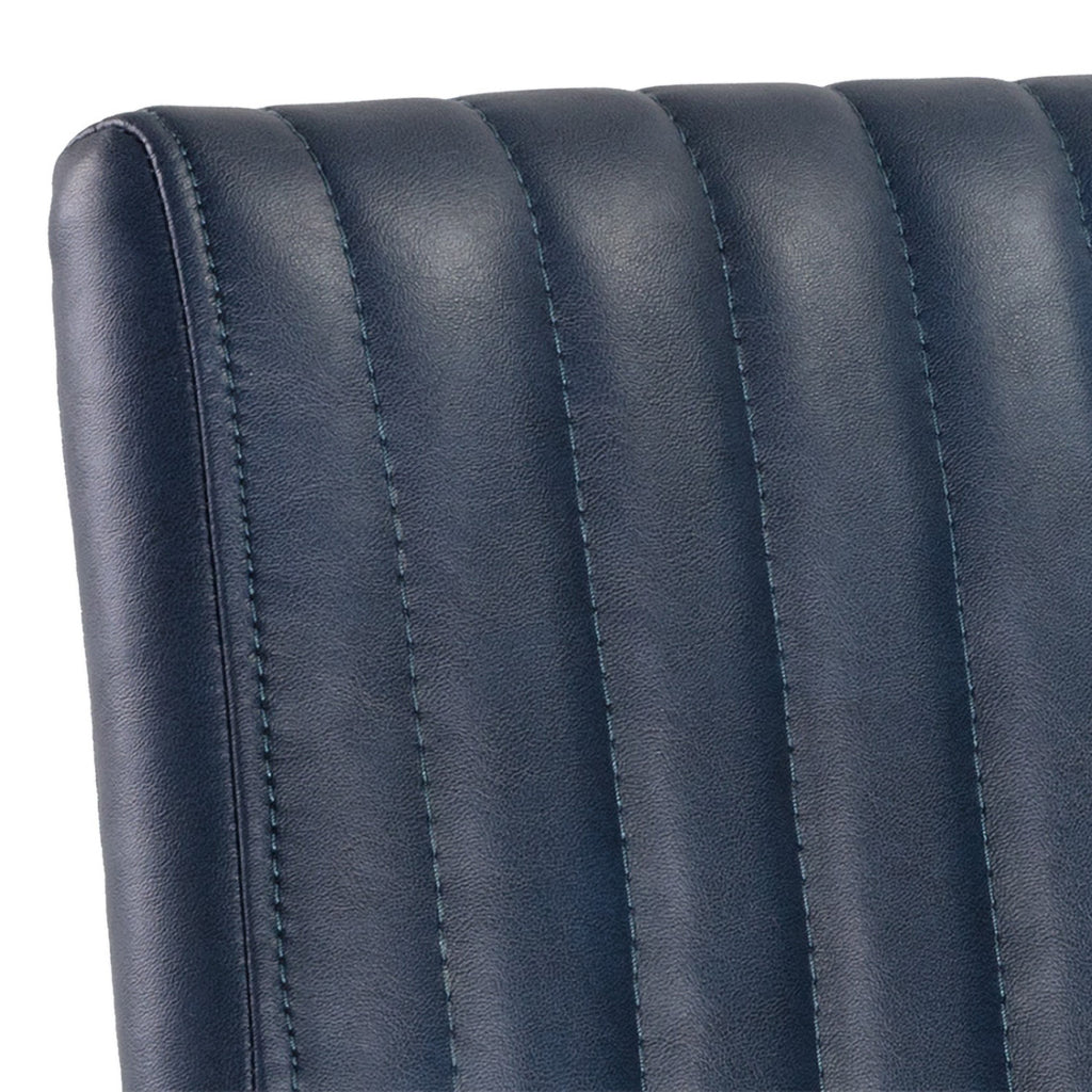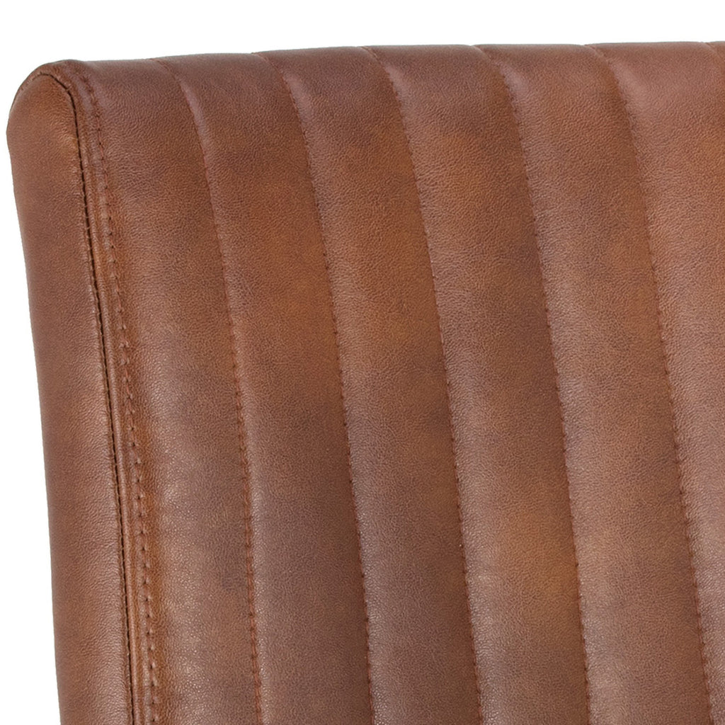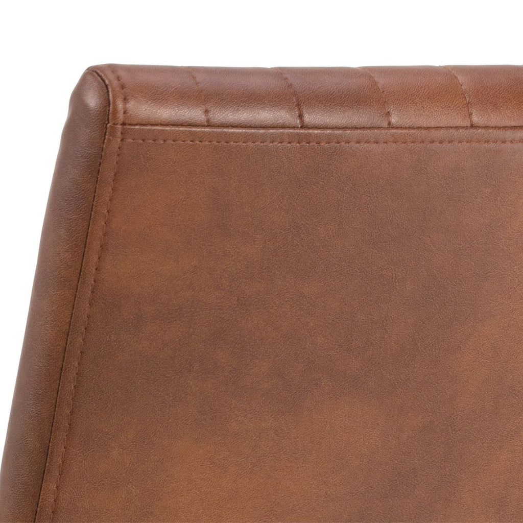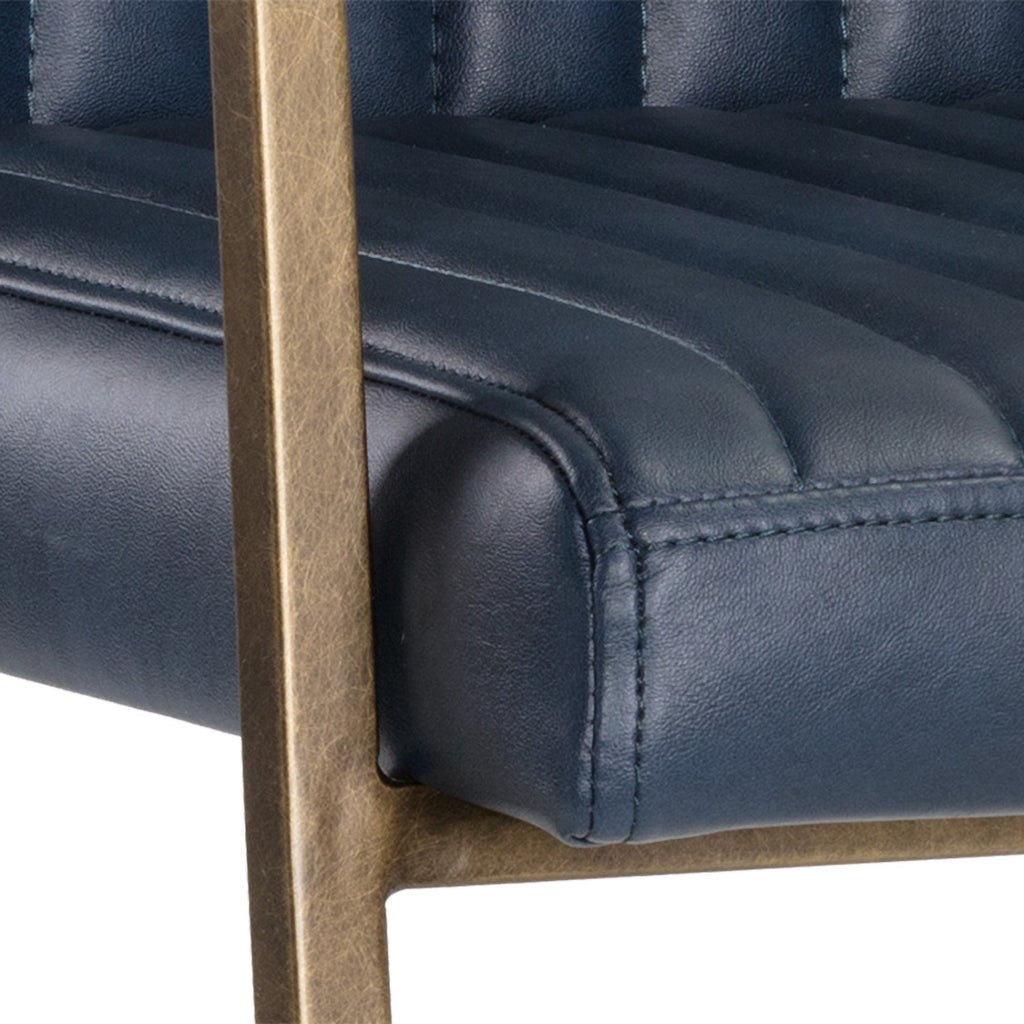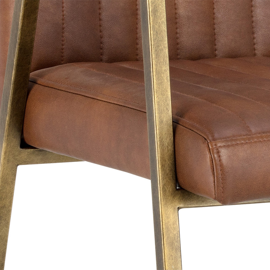 This compact dining armchair from our Ikon collection will bring a sophisticated industrial style to any space. Features bold channel stitching on the seat and seatback and finished with a brushed antique brass frame.