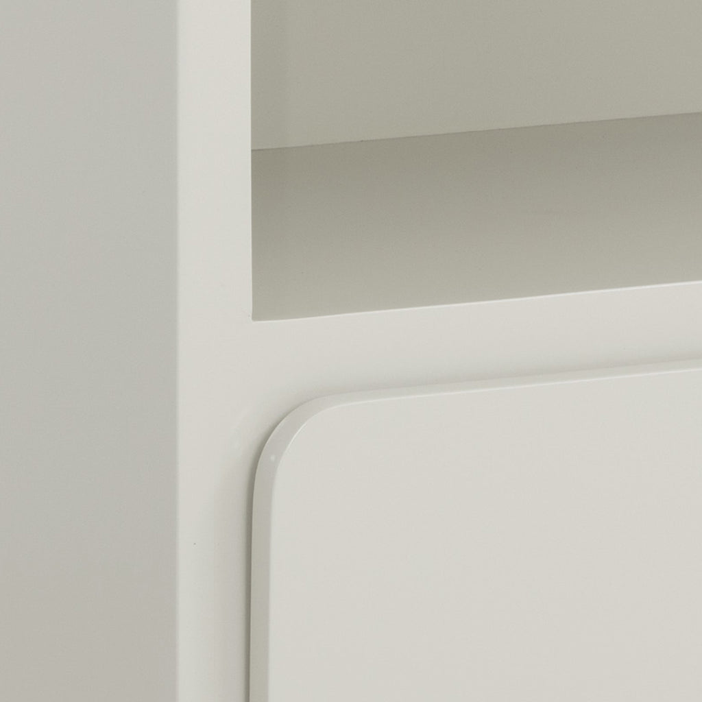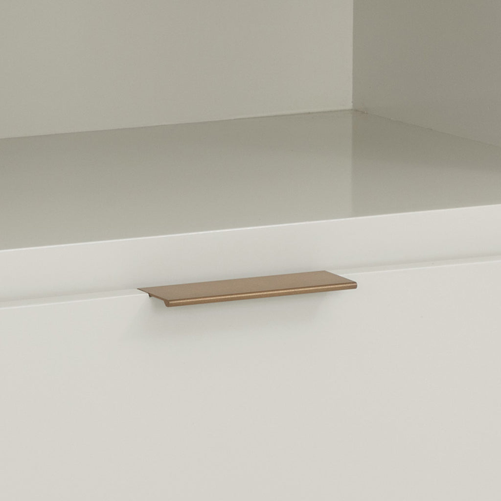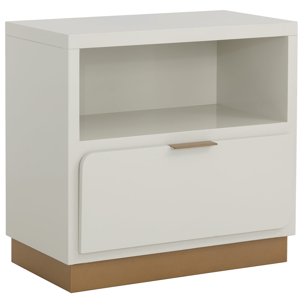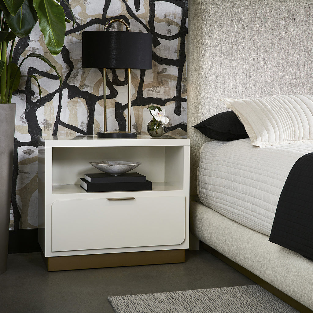 Create a bedroom full of luxe appeal with this contemporary nightstand that boasts a sleek minimalist design. Made with solid poplar wood and available in high gloss cream lacquer finishes. Features a single drawer and completed with rustic bronze steel hardware.
