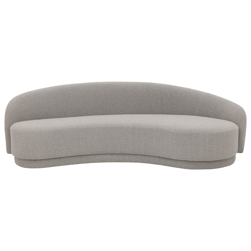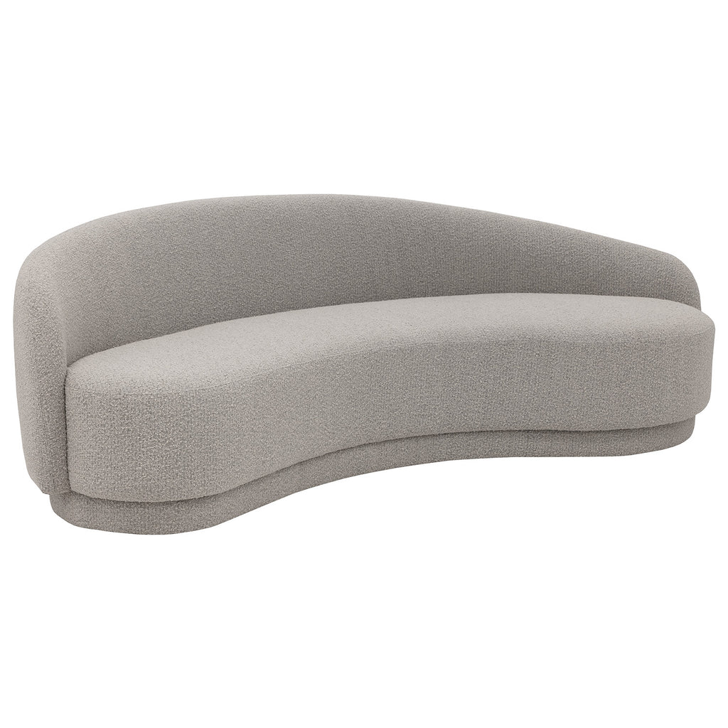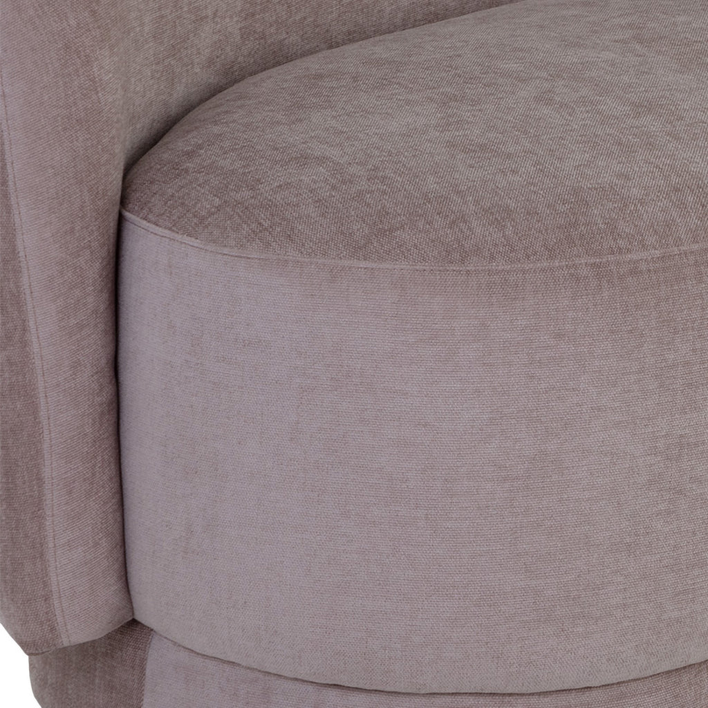 Evoke a contemporary flair with this bold sofa. Features a curved frame altro cappuccino or Lilac fabric. Eye-catching from all angles. Altro cappuccino features a warm gray undertone.