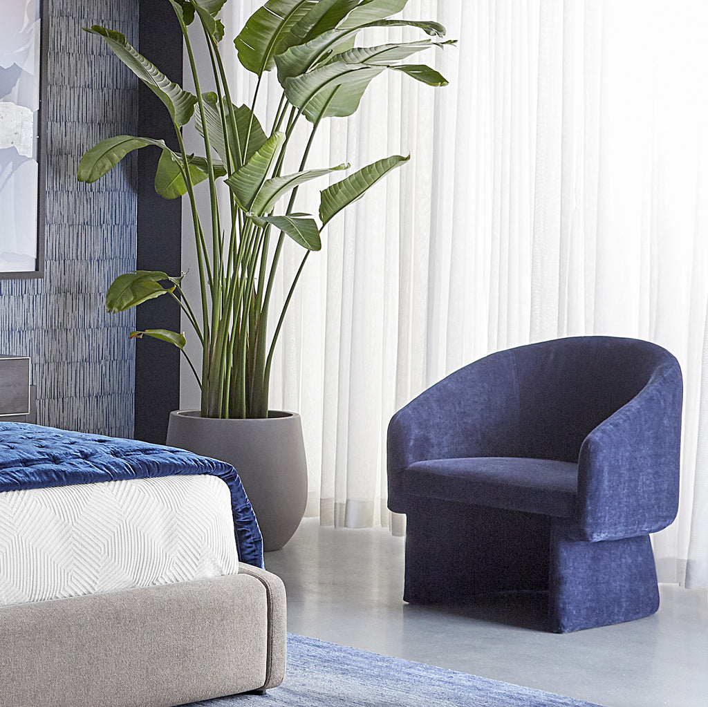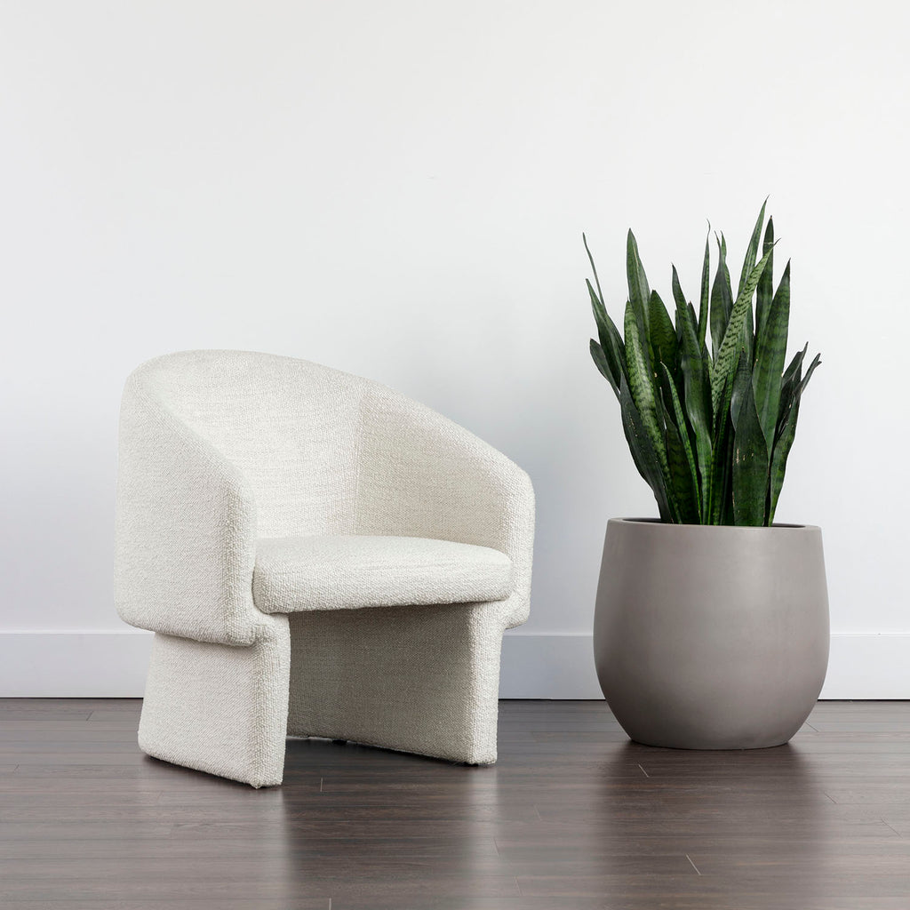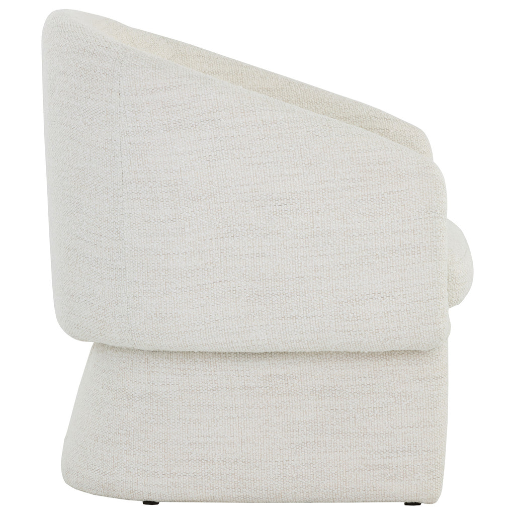 Make a statement with this contemporary lounge chair crafted in Vietnam. Features a modern barrelback seat in fabric. A perfect addition to living, lounge and lobby environments.