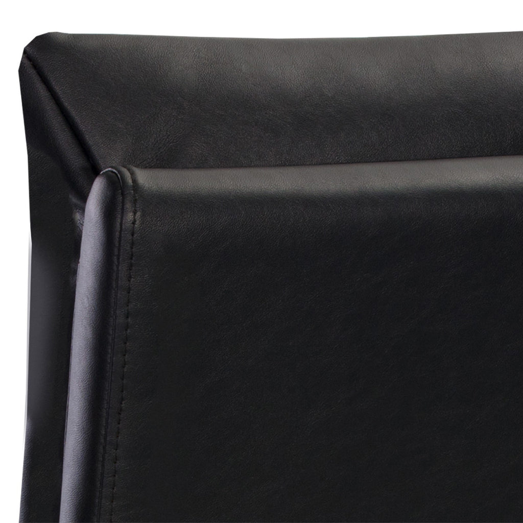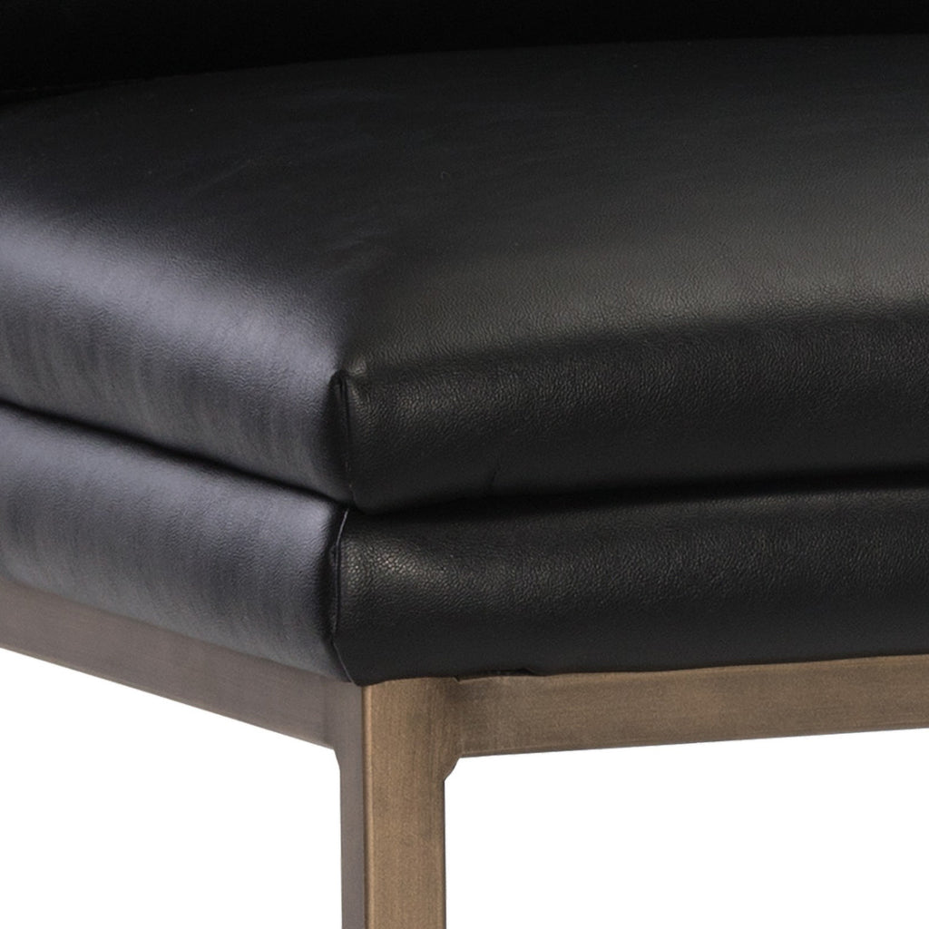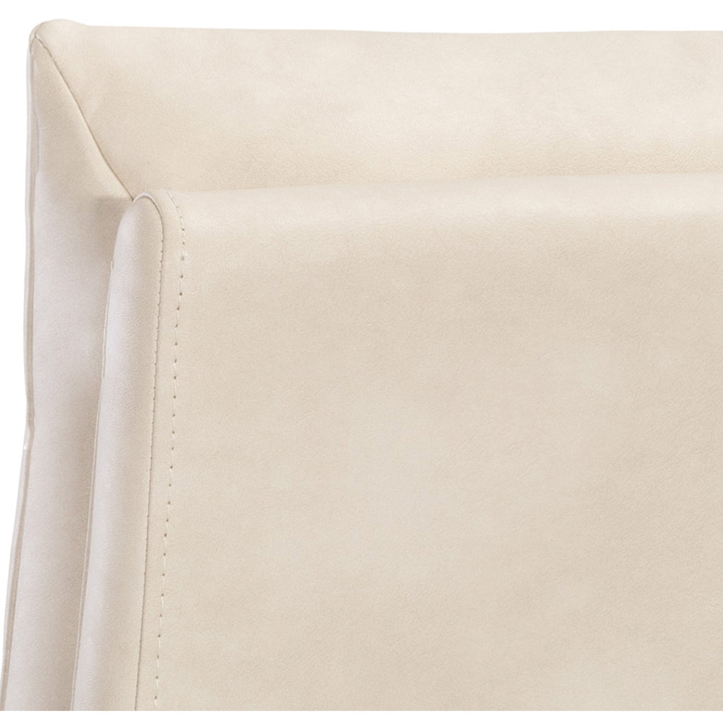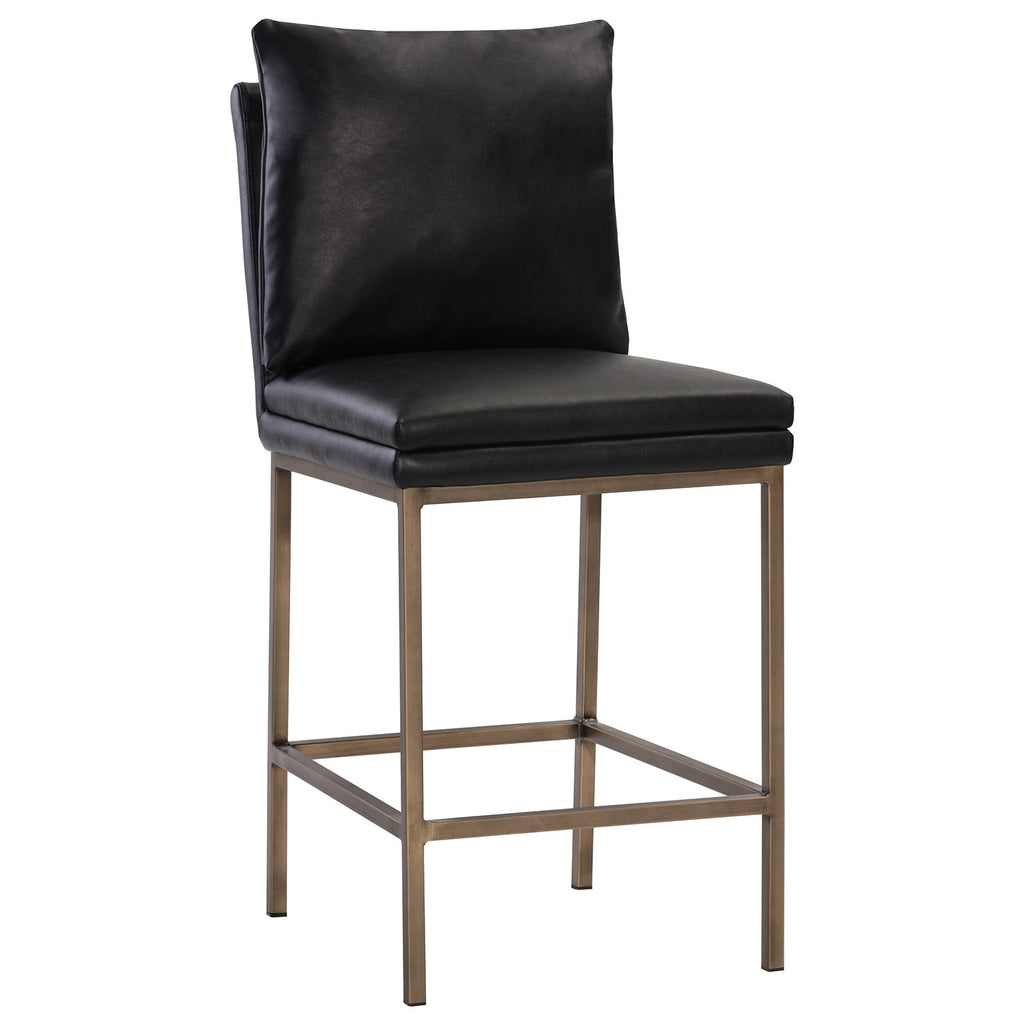 This counter stool features a clean and comfortable design. Designed with a cushion-like seat back in bravo black faux leather with antique brass iron legs. Also available in bravo cream faux leather. Suitable for various dining, kitchen and bar spaces of all sizes.
