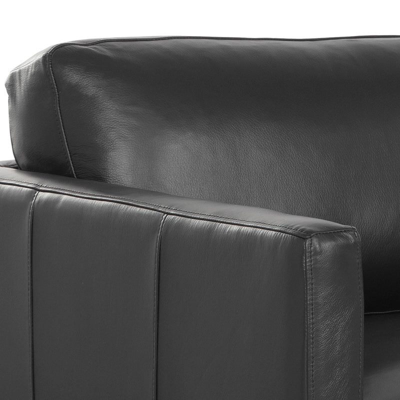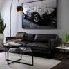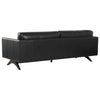 A stylish, retro-inspired sofa. The masculine design features a comfortable seat in cortina black or tan with dark brown solid oak wood legs.