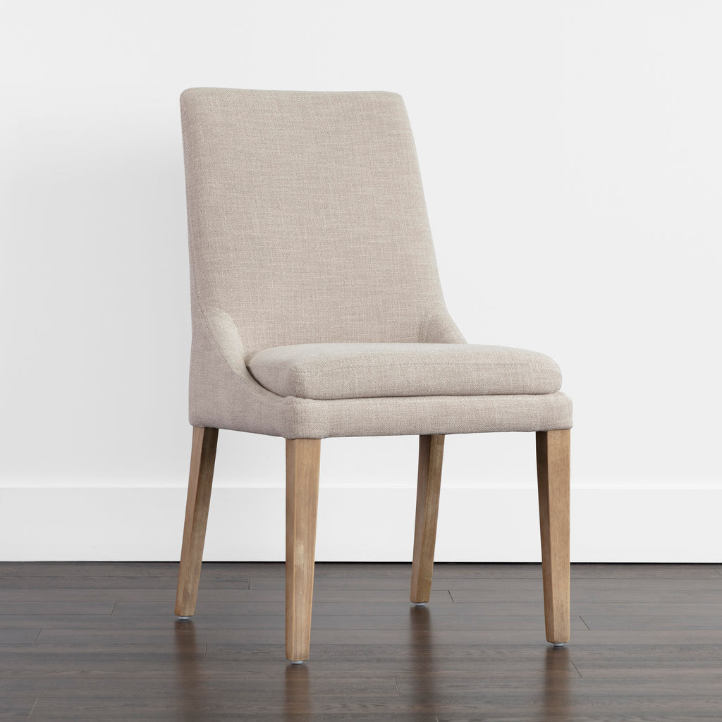 With a beautiful uniform design, this classic dining chair guarantees a comfortable dining experience. Stocked in effie flax fabric and complemented with light brown solid birch wood legs.