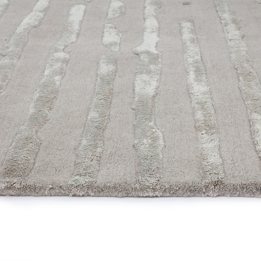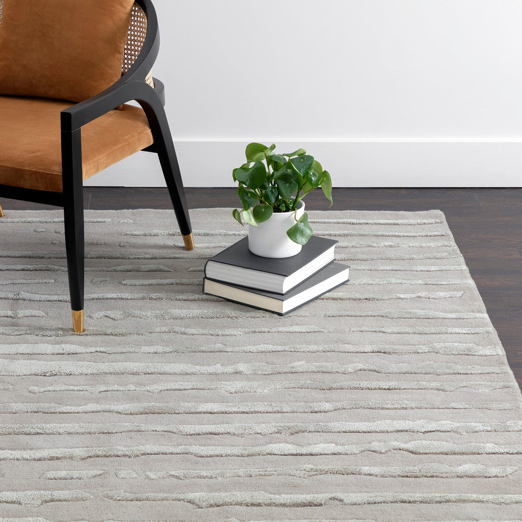 Imperfect lines add charisma to this hand-tufted rug made by skilled local artisans. The wool-blend composition results in a soft texture ideal for various indoor spaces.