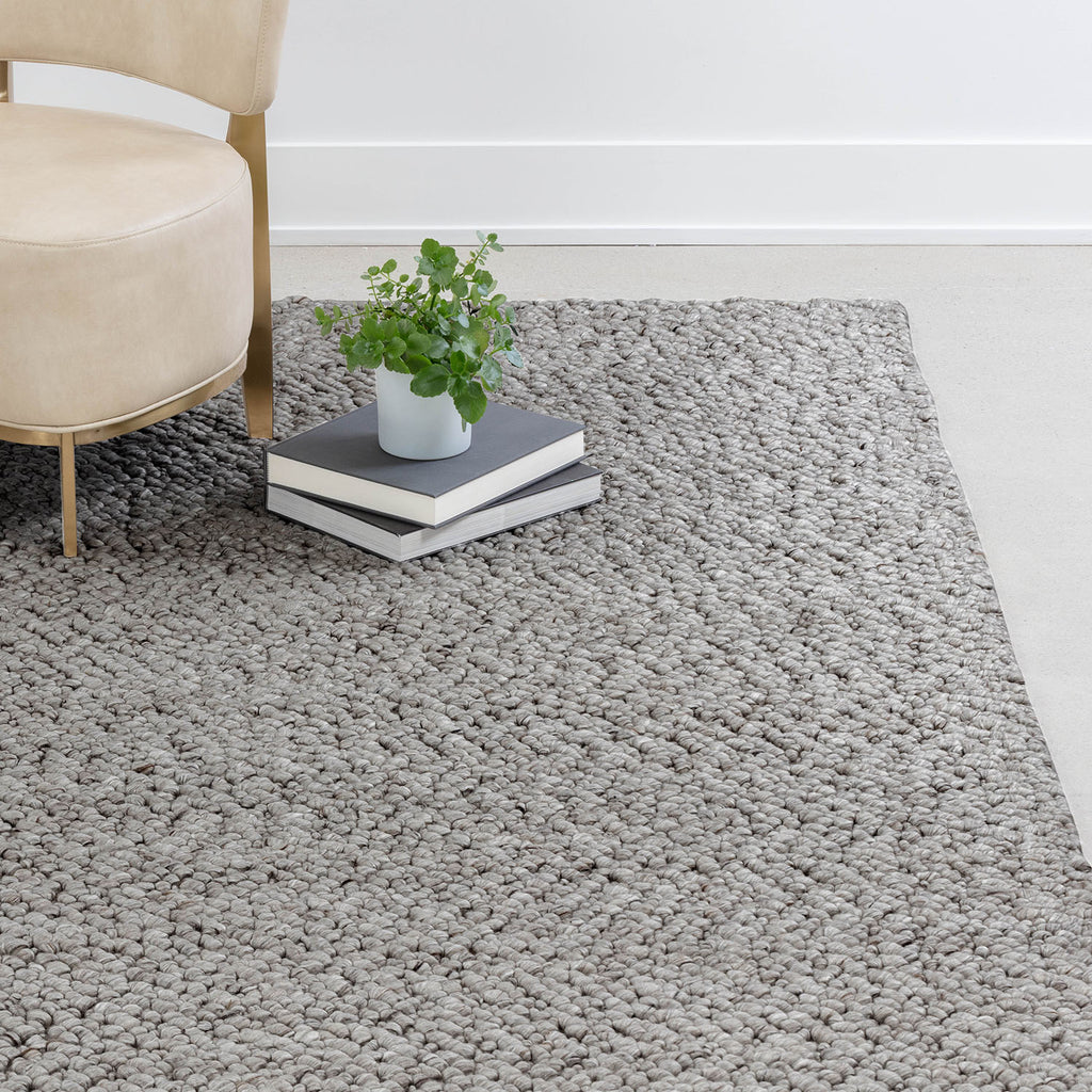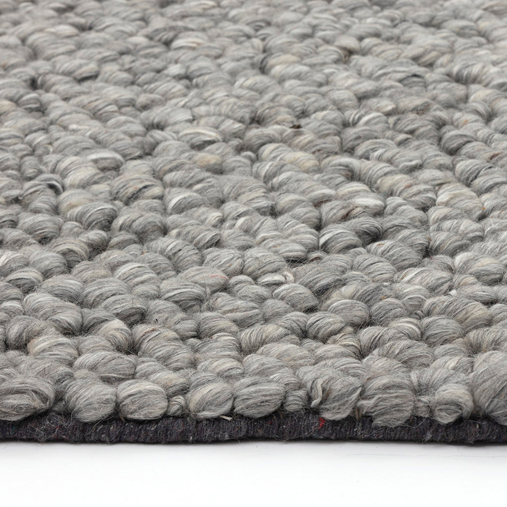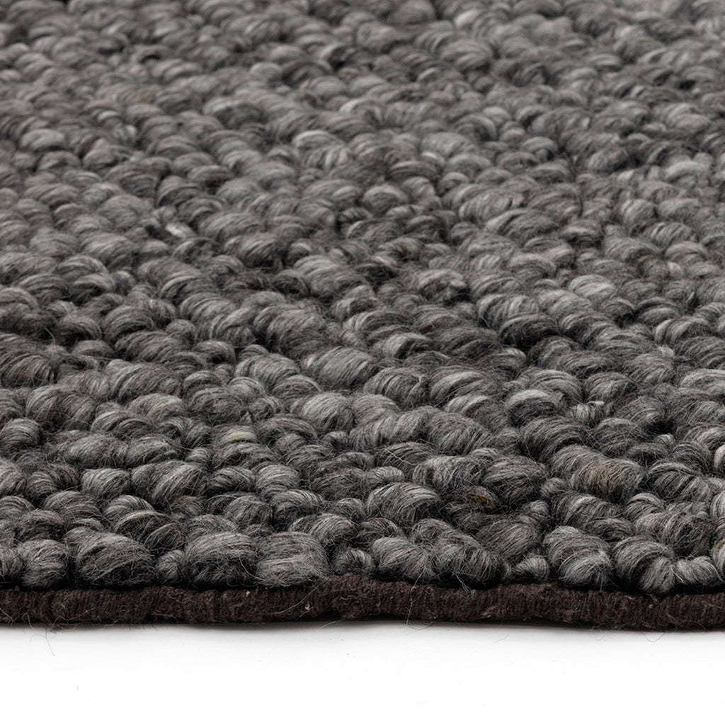 This luxurious rug was handwoven by skilled artisans for a comfortable, contemporary look. Weaves feature a dense wool-blend in black, dust and silver.