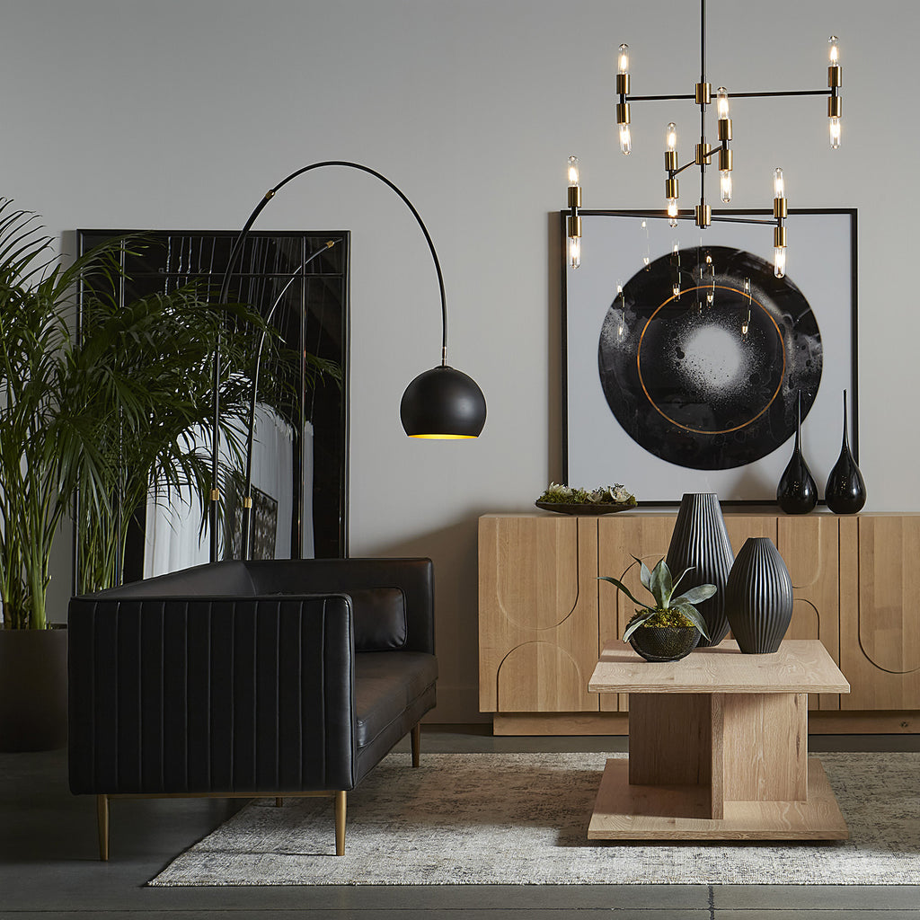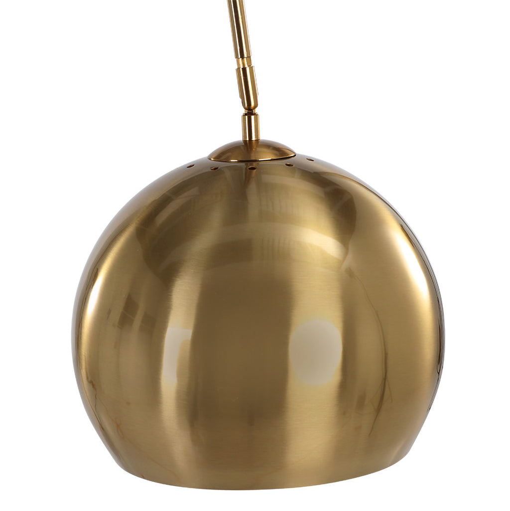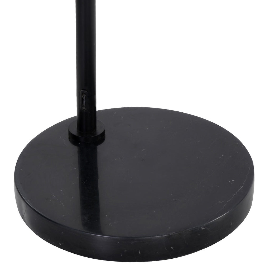 With a sweeping arc, this bold lamp will define living, lounge and office spaces with style. Features a globe shade in brass or black iron with a marble base.
