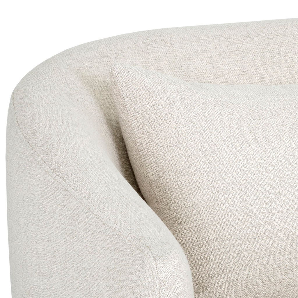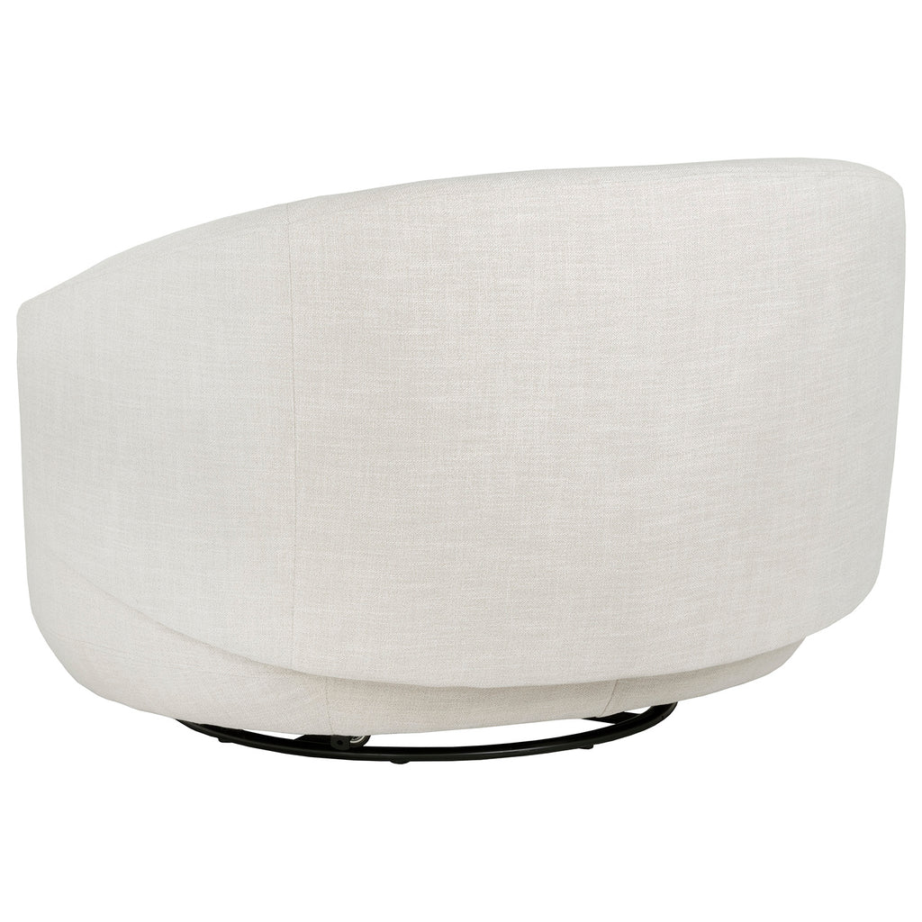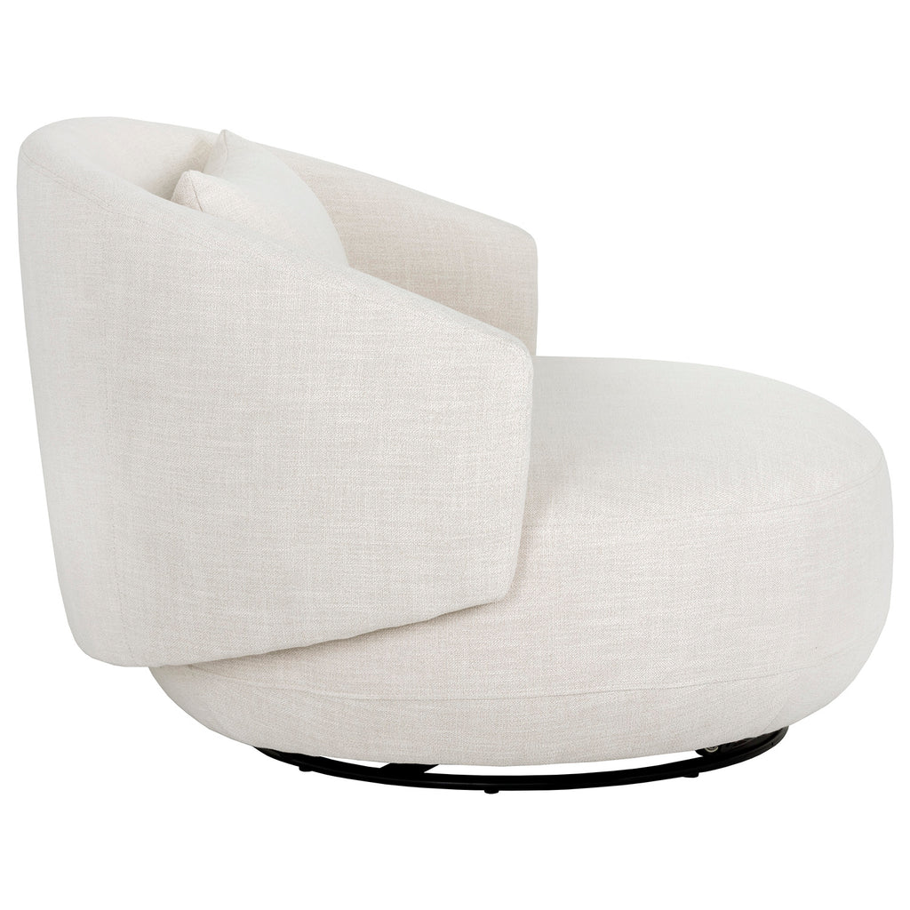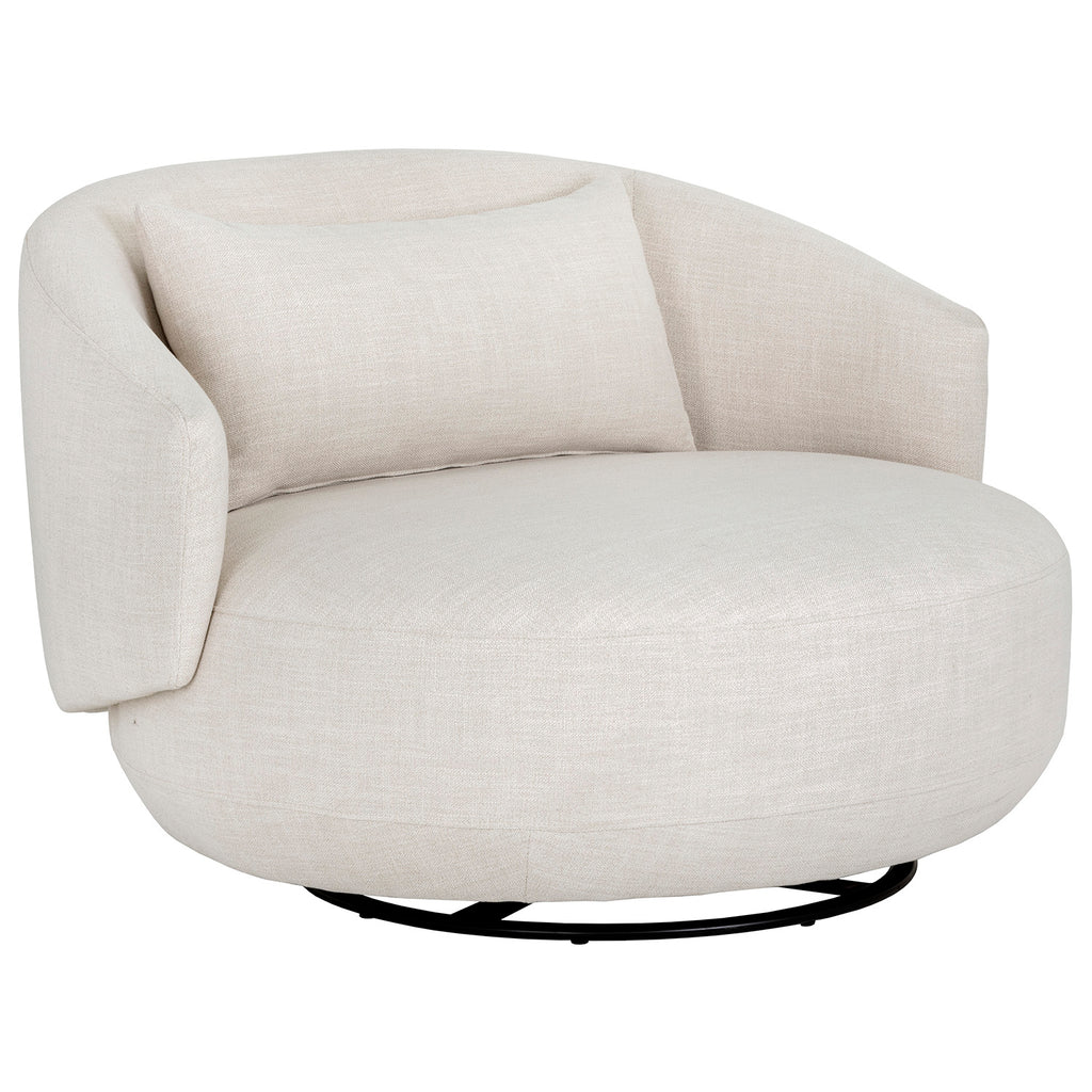 Boasting a beautiful, curvaceous shape, this swivel lounge chair is both contemporary and effortlessly trendy. Stocked in effie linen fabric and completed with a black powder coated steel base.
