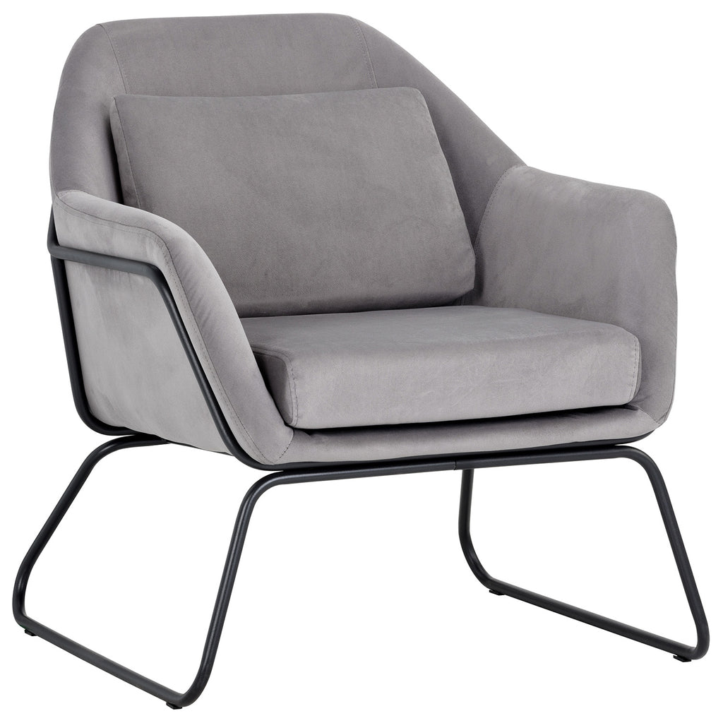 This trendy and versatile armchair breathes form and function. Influenced by modern design, the comfortable seat is upholstered in antonio charcoal performance fabric with an exposed black steel frame.