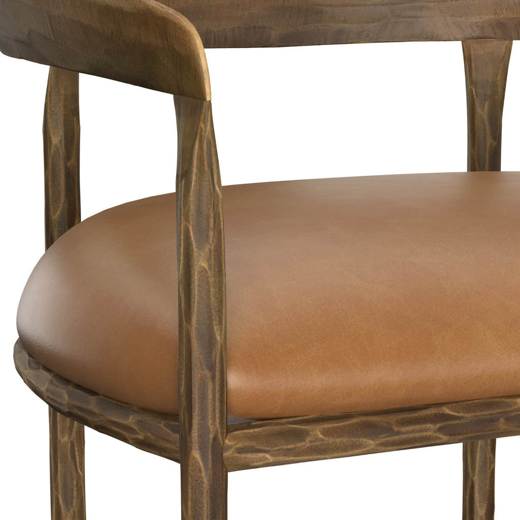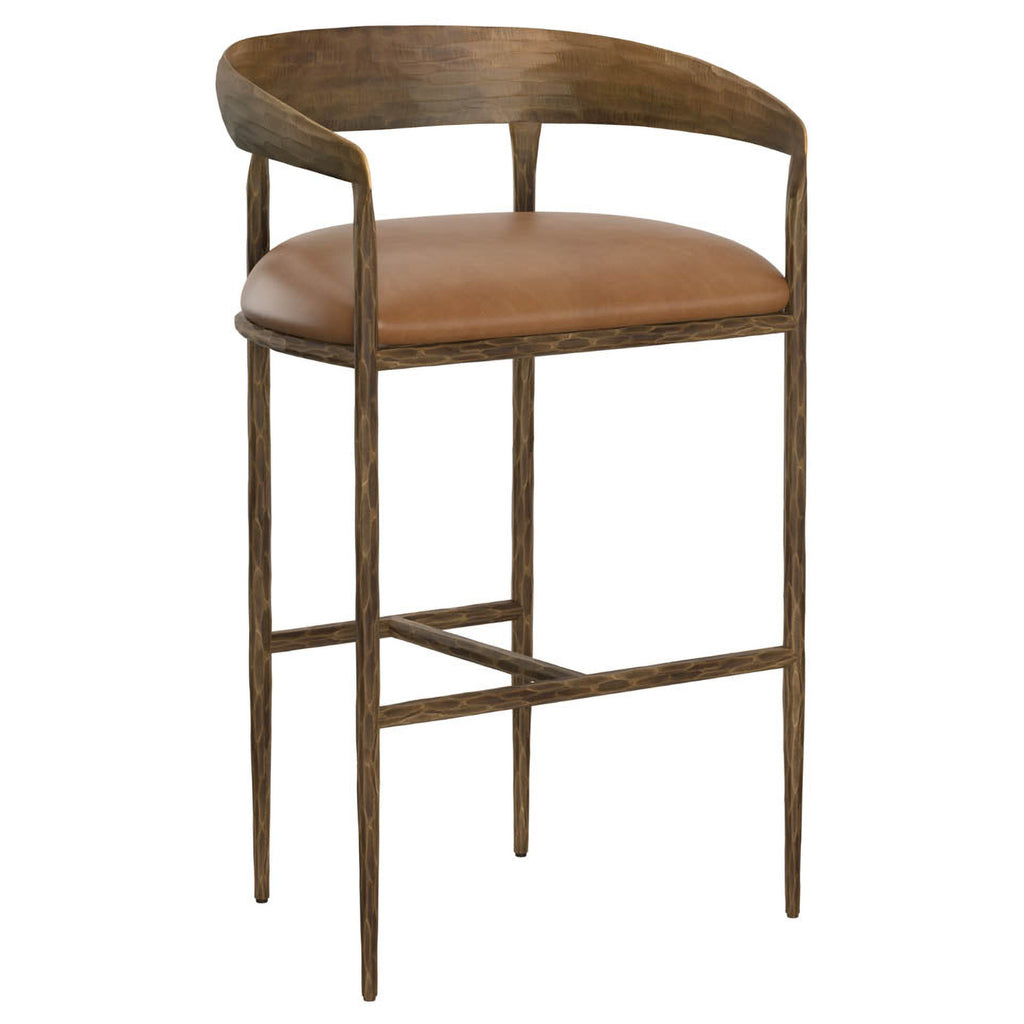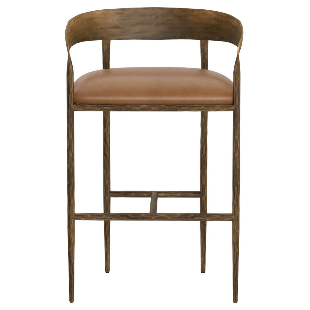 The Zanatta Barstool is all about the subtle details. The hammered metal detailing in the antique brass curved frame provides visual interest that will stand out in any dining space. A tan leather seat completes the look. Handle with Care: This design has been crafted with aniline leather. Leather is a natural material; as such, color variations, markings, wrinkles, grooves and light scratches are acceptable and appreciated characteristics. No two pieces are alike. Visit our Product Care page for more information on how to ensure the lasting beauty of this piece. Made in India. With refined craftsmanship, this design was brought to life by skilled local artisans. Due to the nature of handcraftsmanship, unique imperfections such as fissures, markings and variations in color and shape are welcomed and appreciated characteristics for a truly one-of-a-kind piece.