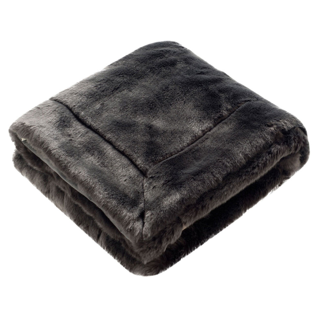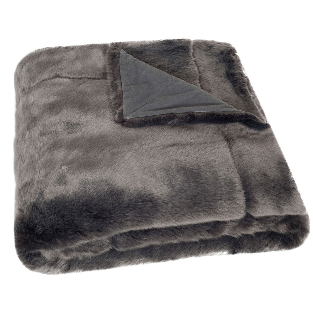 Cozy-up under this soft, supple faux fur throw blanket and let the luxurious look and feel of mink warm you and your home. When draped across a sofa or bed the soothing texture and refined aspect of this plush throw will beautifully accentuate living room or bedroom decor. Brilliantly colored in dark, shimmering silver for an elegant, decorator's finishing touch.