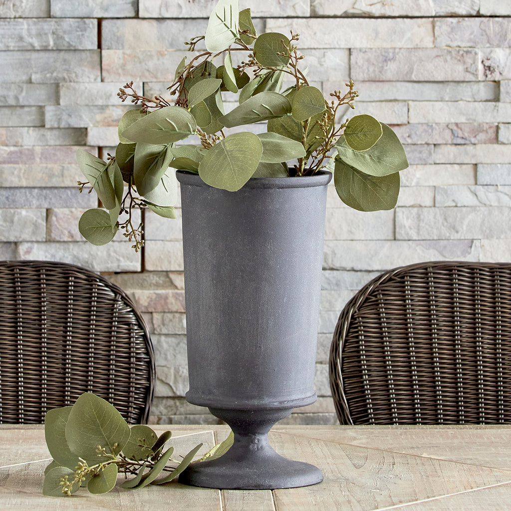 With a finish reminiscent of an aged European zinc, this decorative vase is made to maintain the original look over time. Terrazza is made to maintain the original finish over time, even when exposed to the elements. Durable as well as beautiful. How brilliant! Fill with your favorite fau x stems, or display as is for a simply beautiful accent.
