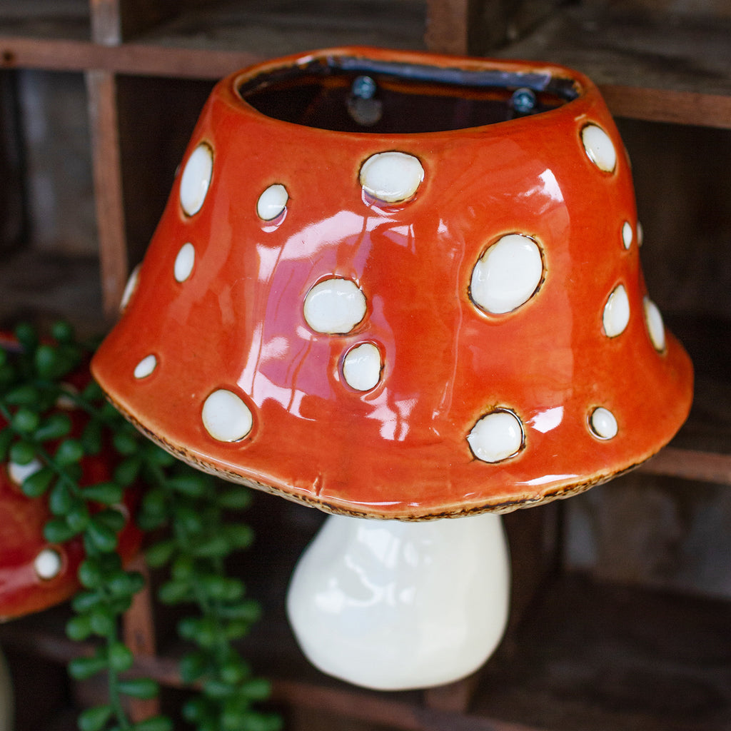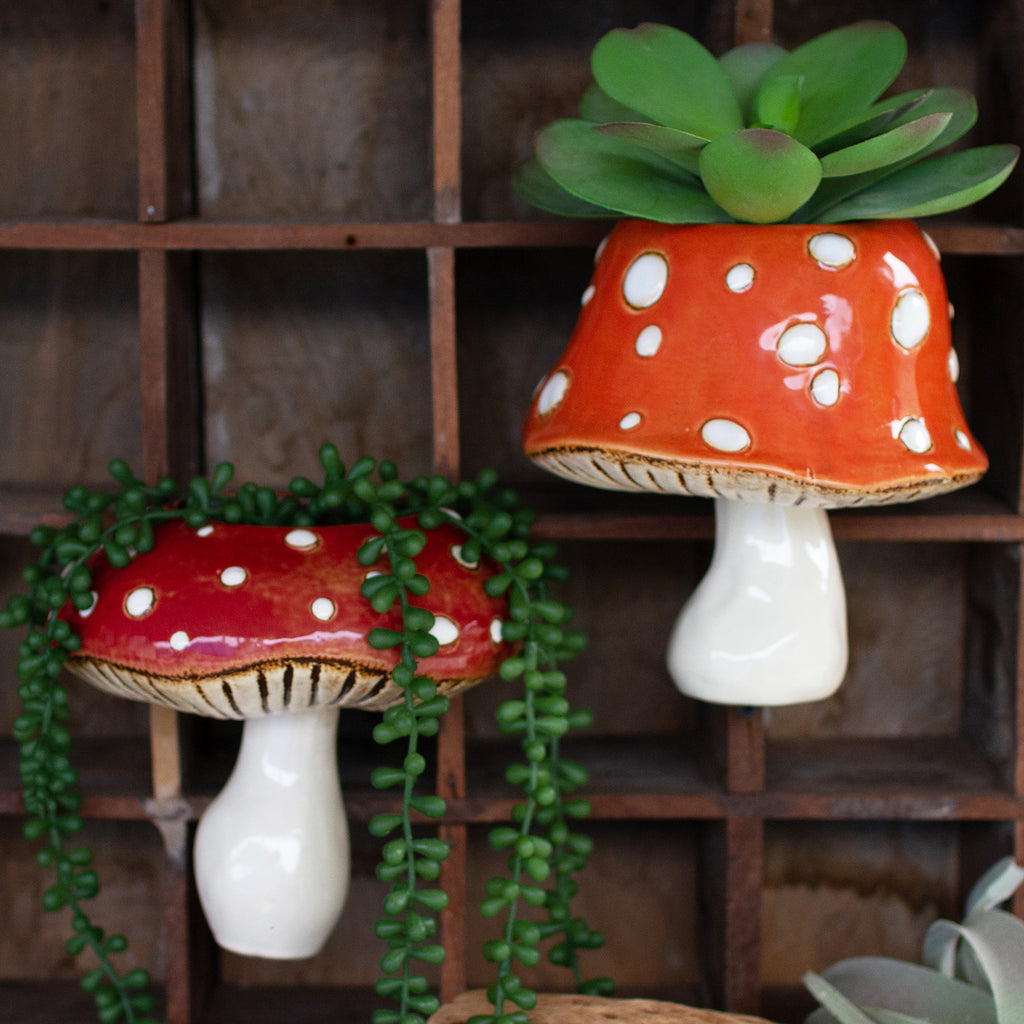 These toadstool wall hangers add pizazz wherever you put them. Pair them with their hanging partners for a multilayered look, or hang them anywhere you need a touch of fun-gi. Great for garden areas or for perking up porches.