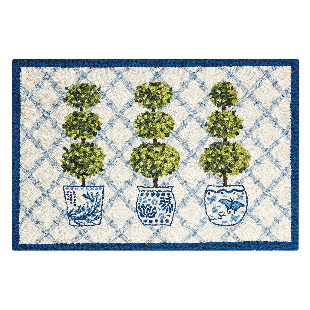 Topiary with Blue Trim Hook Rug
