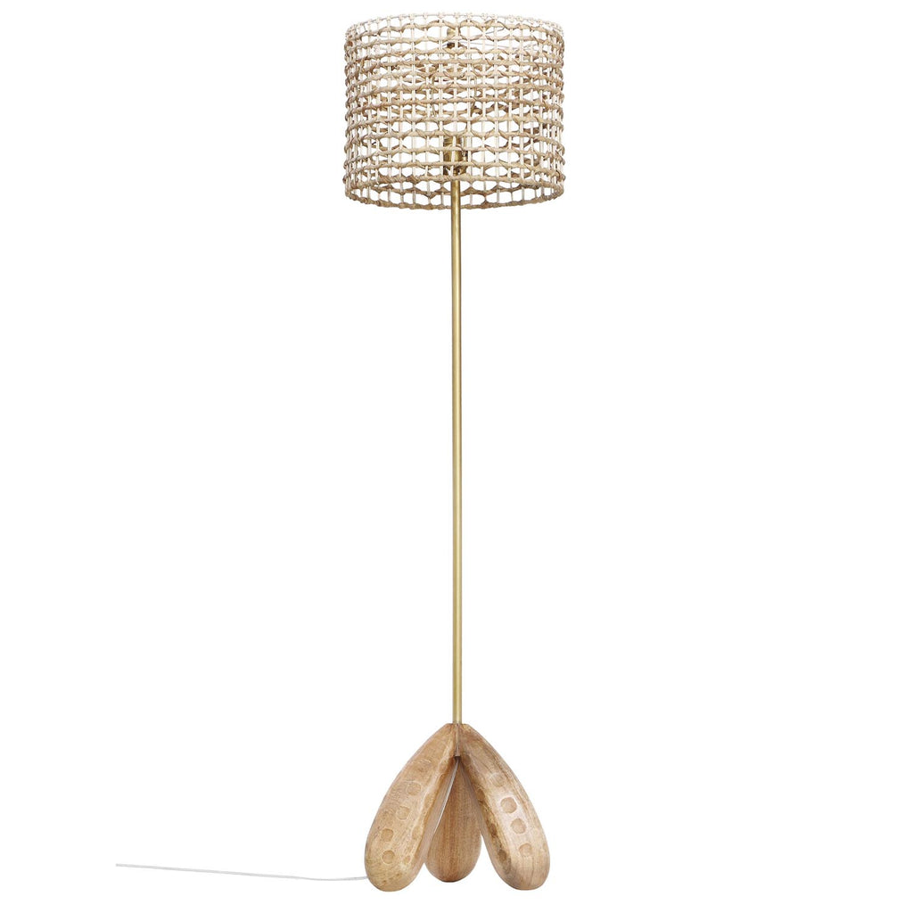 The Alondra Wooden Floor Lamp is a stunning and organic piece that exudes artistic elegance and natural charm. This floor lamp features a unique design with three legs crafted from mango wood, the stem crafted from iron and the shade crafted from rattan and grass - all materials together makes this item perfect for a natural vibe and long-lasting. This floor lamp's natural colors and textured materials make it versatile for any interior design style.