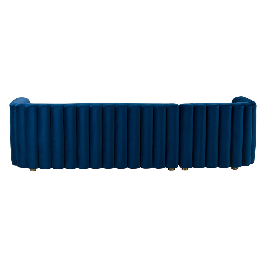 Graceful and eye-catching, the Callie Sectional is the epitome of modern glamour. Its curved silhouette, scalloped tufted back and beautiful stainless steel legs, add character and style to any room. Available in multiple color options.