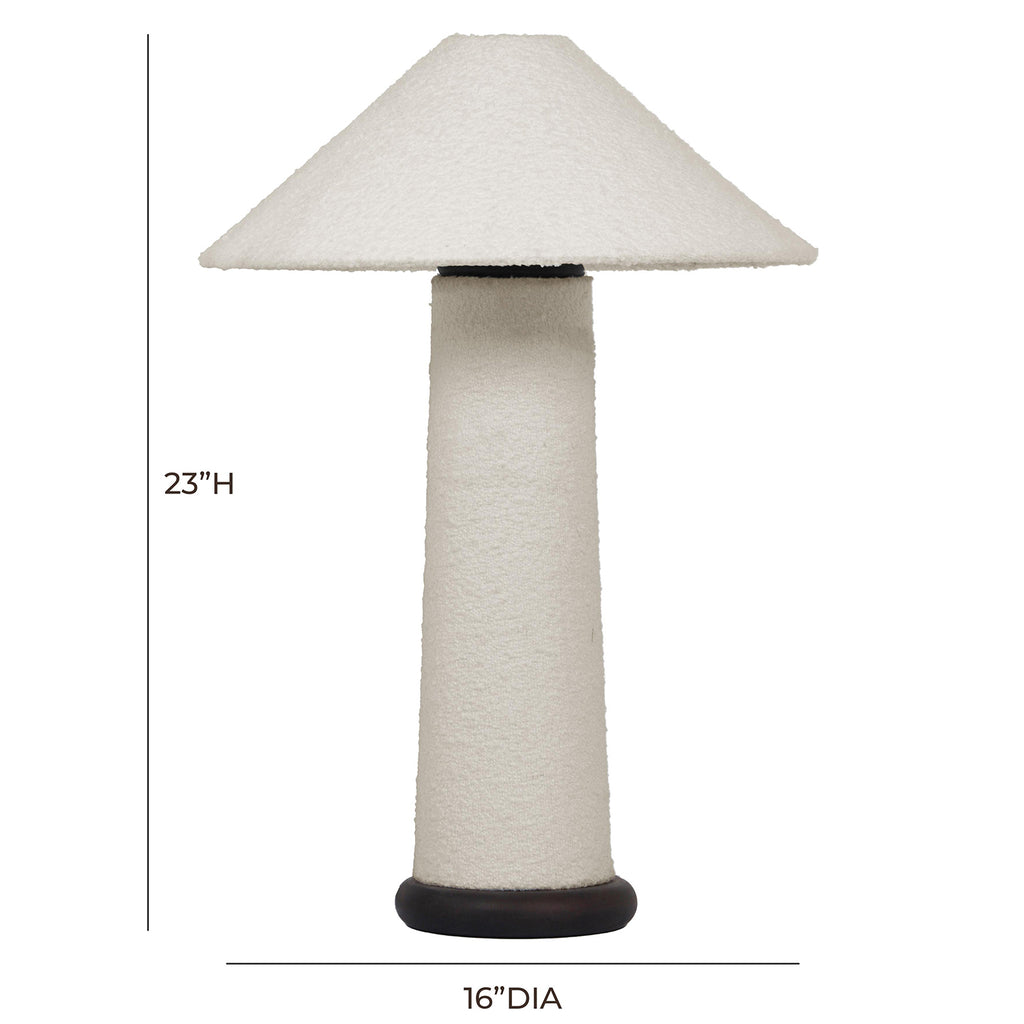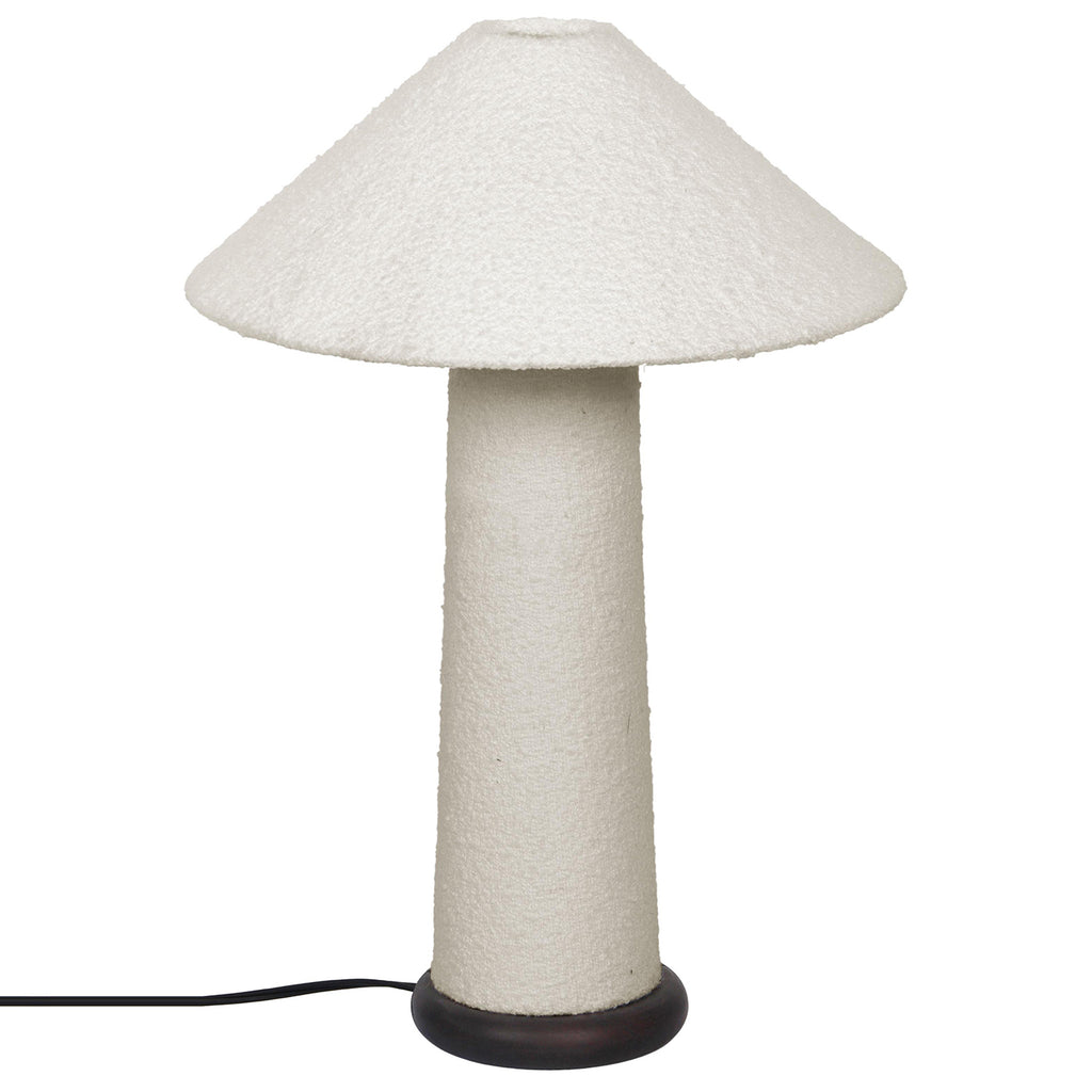 Bring a touch of mid-century charm to your decor with the Faith Boucle Table and Floor Lamps. These pieces feature a fully-upholstered, trendy silhouette in cream boucle that sits atop a sturdy wood base, blending texture and warmth. The conical lampshade completes the design, effortlessly dressing up any corner of your home with a sophisticated and modern flair.