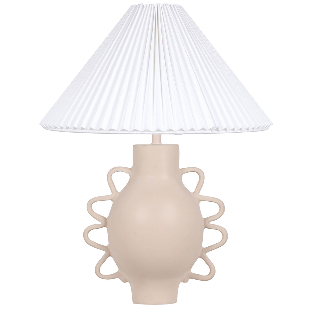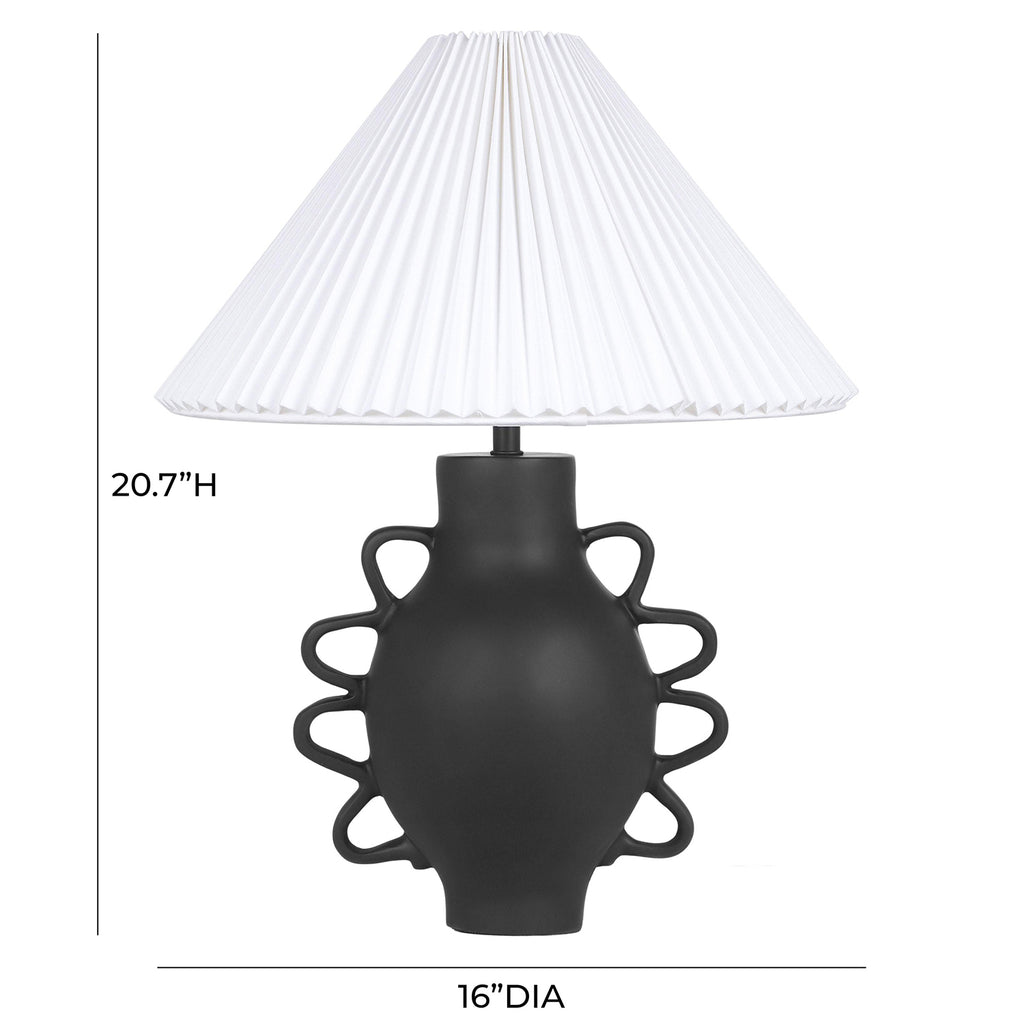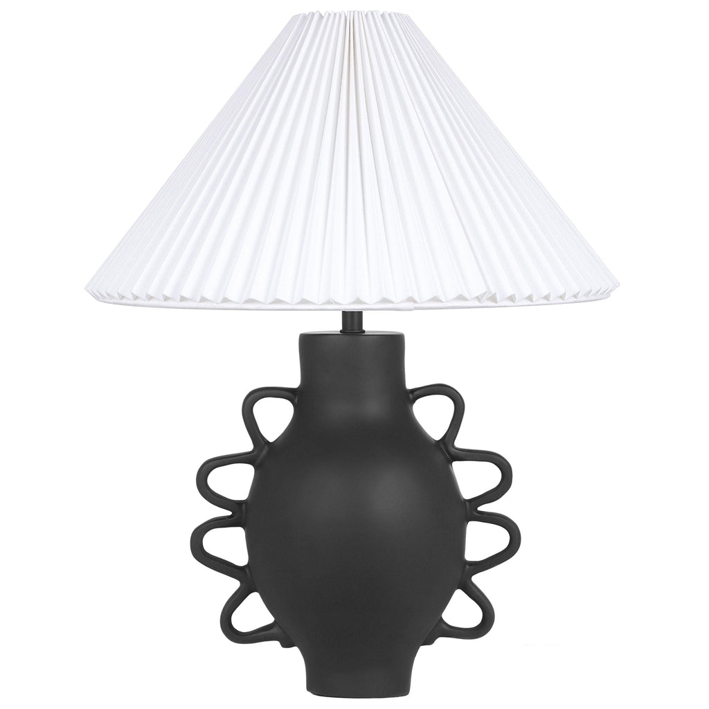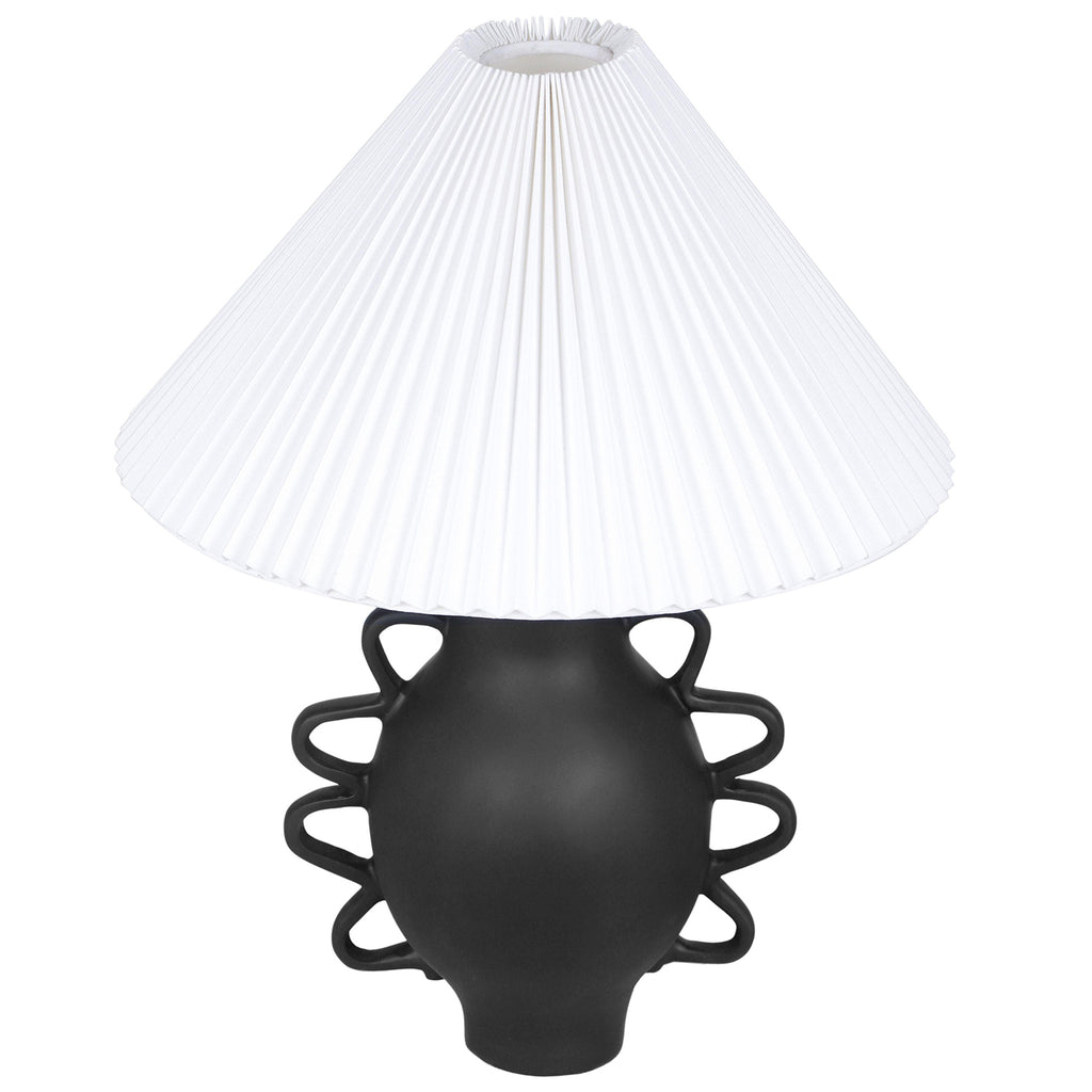 Introduce some whimsy to your space with the TOV Furniture Hazza Pleated Table Lamp, available in soft cream or striking black. Crafted with a biomorphic surface texture from hand-formed fiberglass and a pleated lampshade, this lamp is a unique fusion of artistry and functionality. Whether you're completing a maximalist setting or seeking a statement piece for a wabi-sabi neutral space, the Hazza lamp effortlessly adds personality and charm to any room.