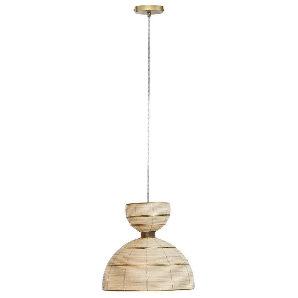 Let the glow and enchanting design of the Lydia Rattan Pendant Lamp become the centerpiece of your living room, dining room, entryway or kitchen! The captivating hourglass shape adds a touch of style and modern glamour and the natural rattan and durable gold iron materials provide a bohemian elegance.
