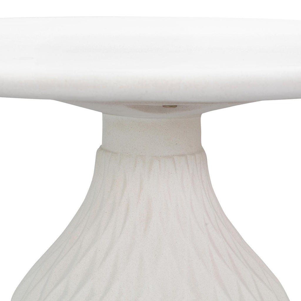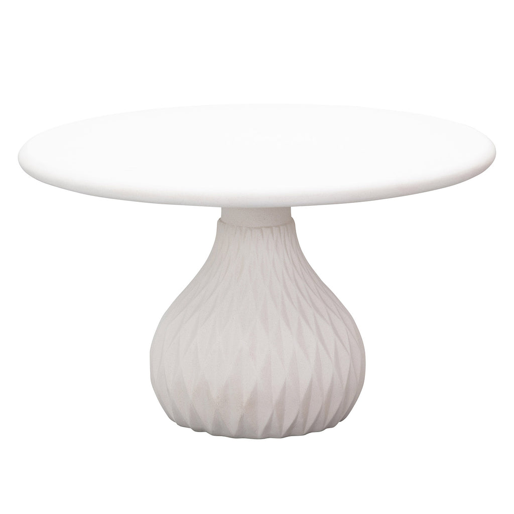 Stunning indoors or outdoors, the Tulum table brings glam style to your living experience. Masterfully crafted from concrete, this round coffee table measures 27.5 inches in diameter and boasts a gorgeous diamond-pattern design on its pear-shaped pedestal base.