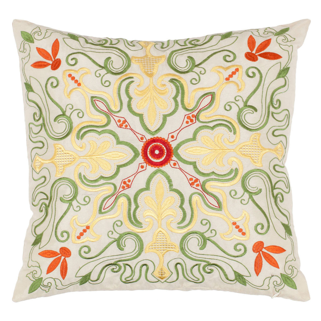The Bohemian chic look of Suzani embroidery is captured in 100 percent polyester accent pillows of 100% polyester. Brimming with rich detail and a global bazaar look, these pillows add exotic flair to any interior design scheme. Sold as set of two.
