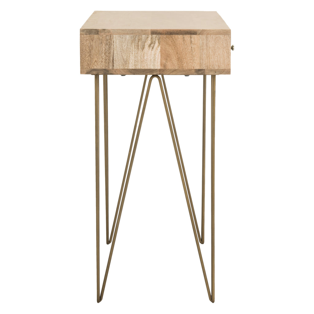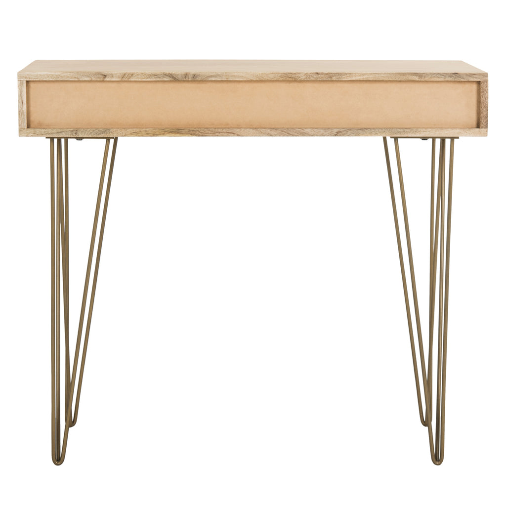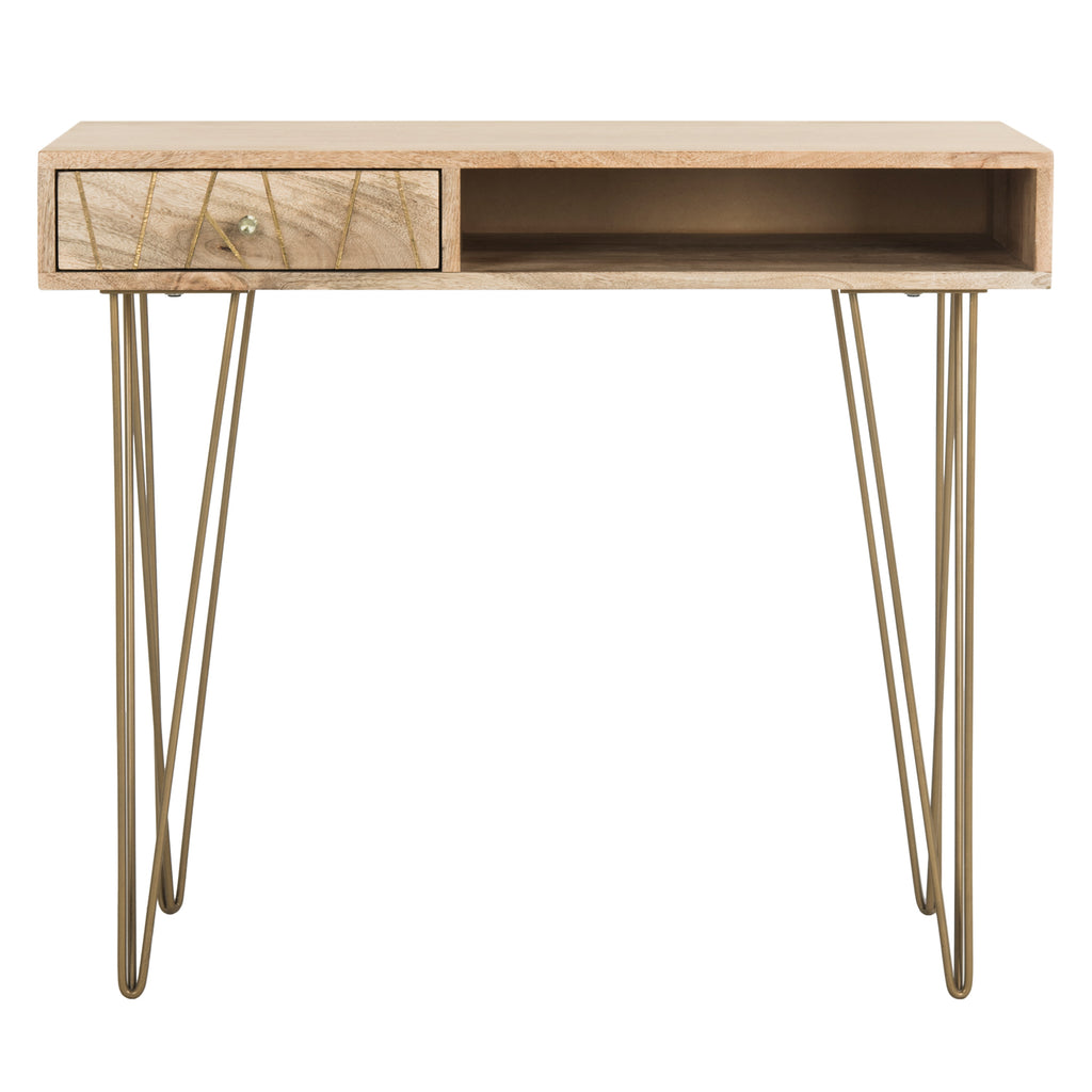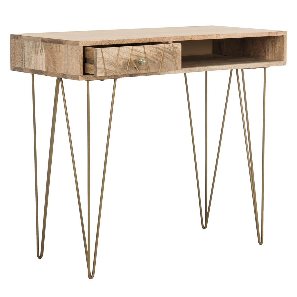 Tall and lovely, this contemporary Trigg desk brings retro flair to the home office or living room. Crafted with mango wood, its natural finish illuminates its rich texture. Chic hairpin legs add elegance and charm while an ample drawer creates extra storage.