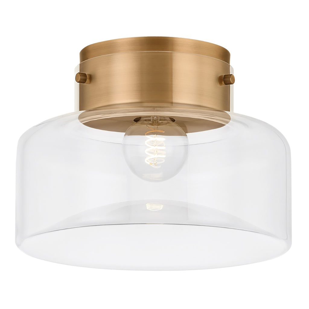 Troy Bellow Flush Mount aims for a sense of dramatic tension. The concave lower edge of the glass mirrors the convex surface at the top, creating an impression that the two surfaces are drawing towards each other. The dimpled lower surface is features subtle etching that acts as a diffuser, casting a warm glow when illuminated. Finished in an inviting Patina Brass, this flush mount serves as a refined addition to contemporary spaces.