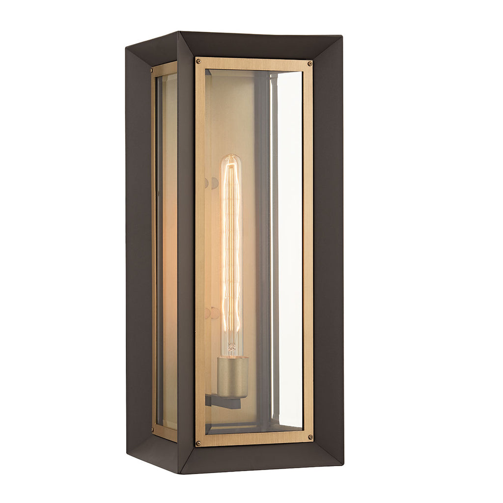 Casual, sophisticated, and little bit curious, express yourself with eclectic, artisan-made lighting by Troy. Let's take this outside, shall we? Troy lighting offers versatile outdoor lighting for doors, patios, or any space that needs extra illumination. A design feat, the Troy Lowry exterior wall sconce combines impeccable metalwork with design-driven style. The inverted cube features a material mix of bronze-finished aluminum and patina brass paired with clear beveled glass for an added layer of finesse. Complex in theory, Lowry is undeniably effortless, adding instant glamour to any exterior.