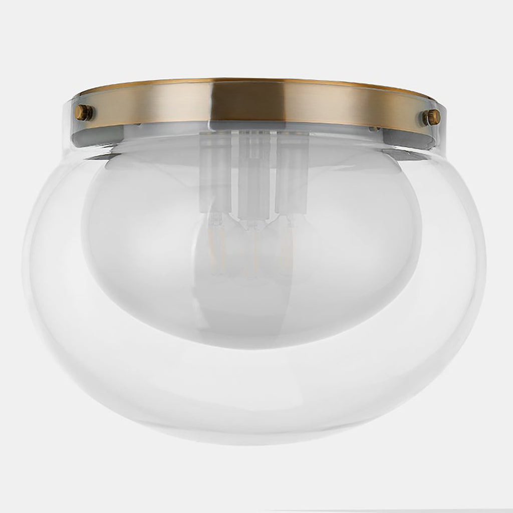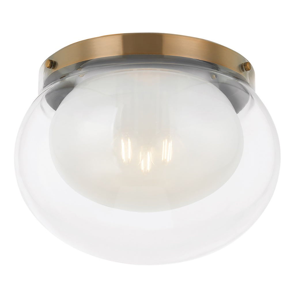 Paying tribute to the ‘70s, Troy Magma features a layered glass silhouette with serene finish combinations. With clear glass on the exterior and mist glass within, this three-light flush mount benefits from an ethereal halo effect. Mounted on a Patina Brass base, it brings an artistic touch to the everyday.