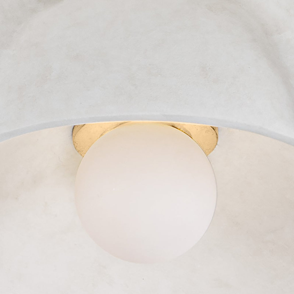 Inspired by nautical lighting, Troy Modesto Flush Mount blends clean modern styling with warm, natural materials. A finned dome-shaped shade in Fossil White Ceramic finish gives the fixture a textured, weathered look. Minimal Vintage Gold Leaf hardware details add just a hint of shine. Available as both a wall sconce and flush mount.