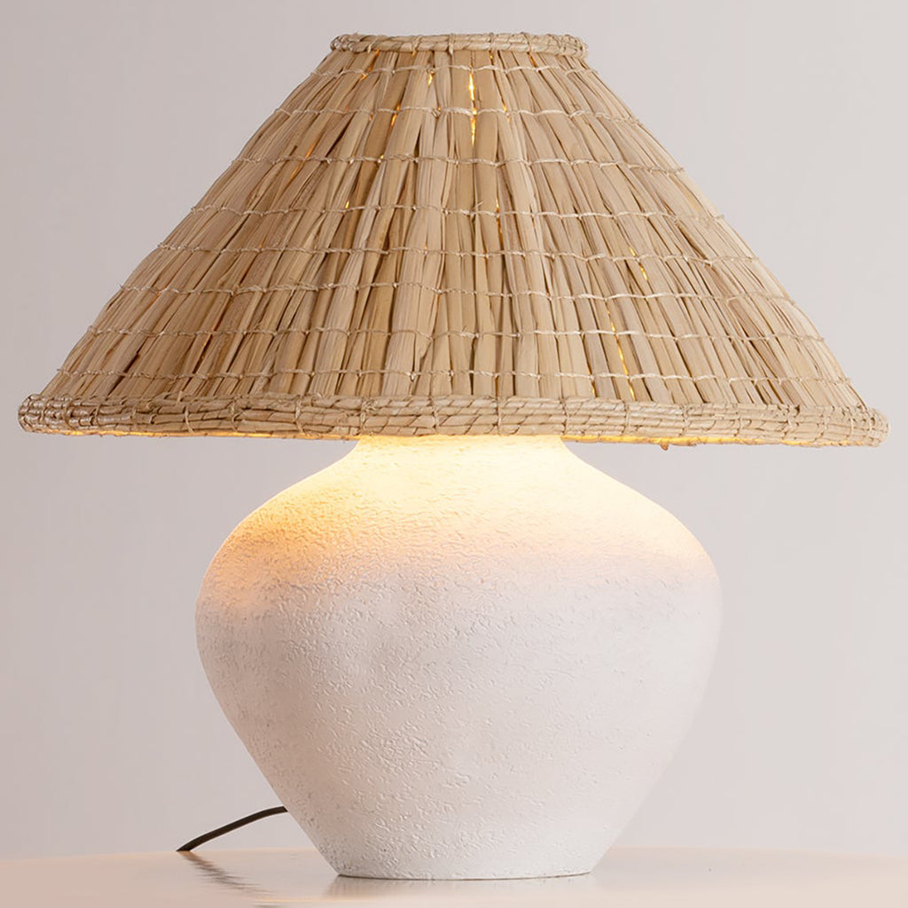 The raw finish and distinctive indentations of the ceramic base of Troy Solon Table Lamp give it a delightful found object quality. By contrast, the woven grass shade provides a refreshing touch with its sharp taper and organic texture. Casting light downwards across the tactile clay, Solon celebrates the marriage of enduring natural materials, textures, and tones.