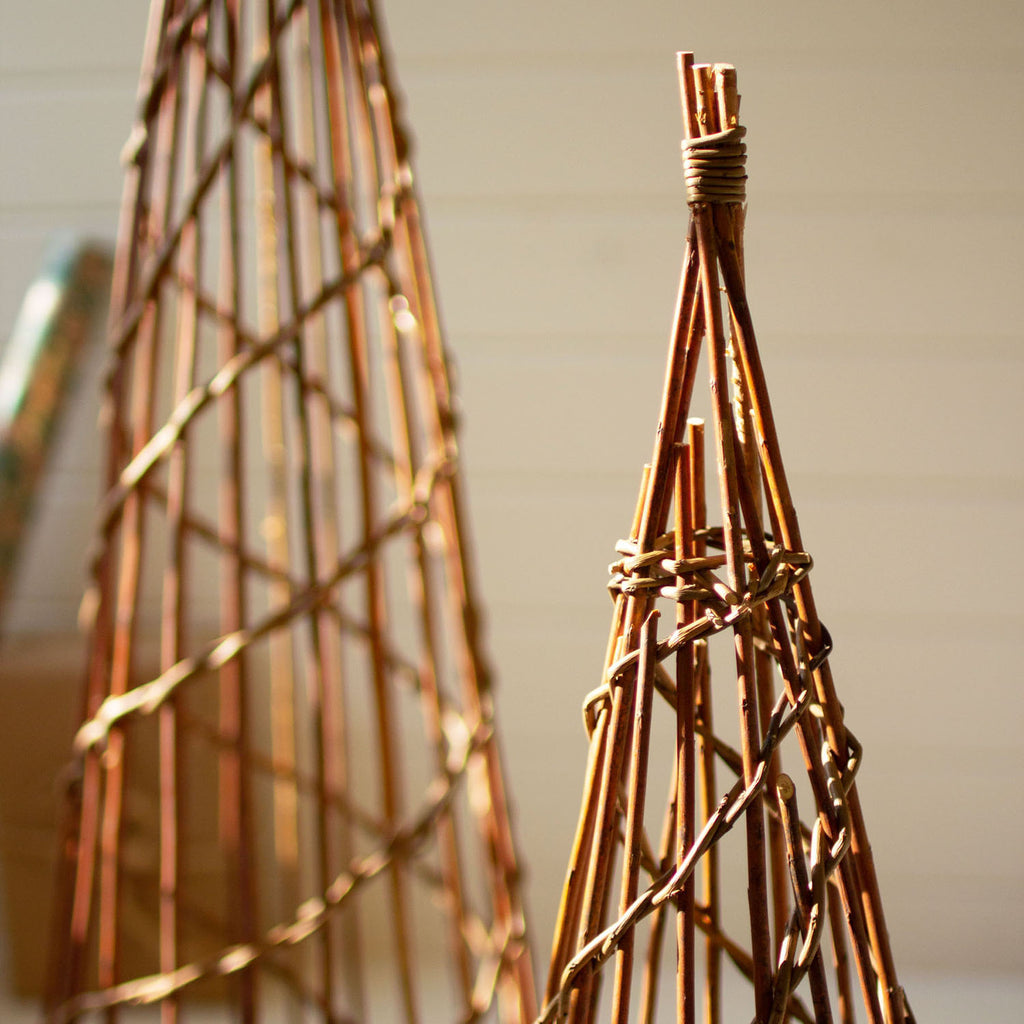 These trees are sure to please. When not in use, these trees nest together for easy storage. Use them as a set around your fireplace, place them in your entryway, or separate them for a twiggy touch all over the house.