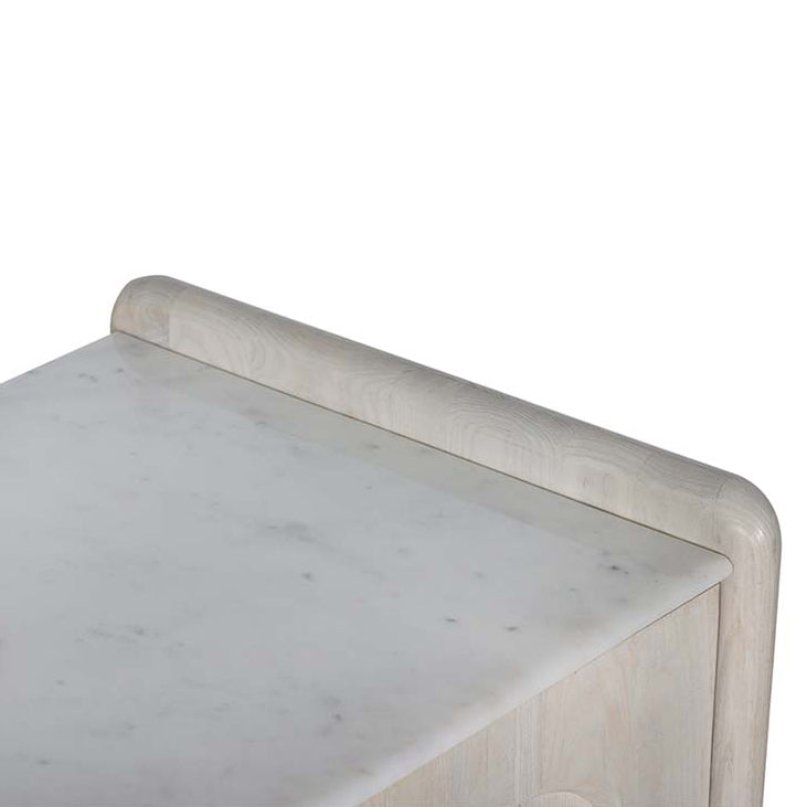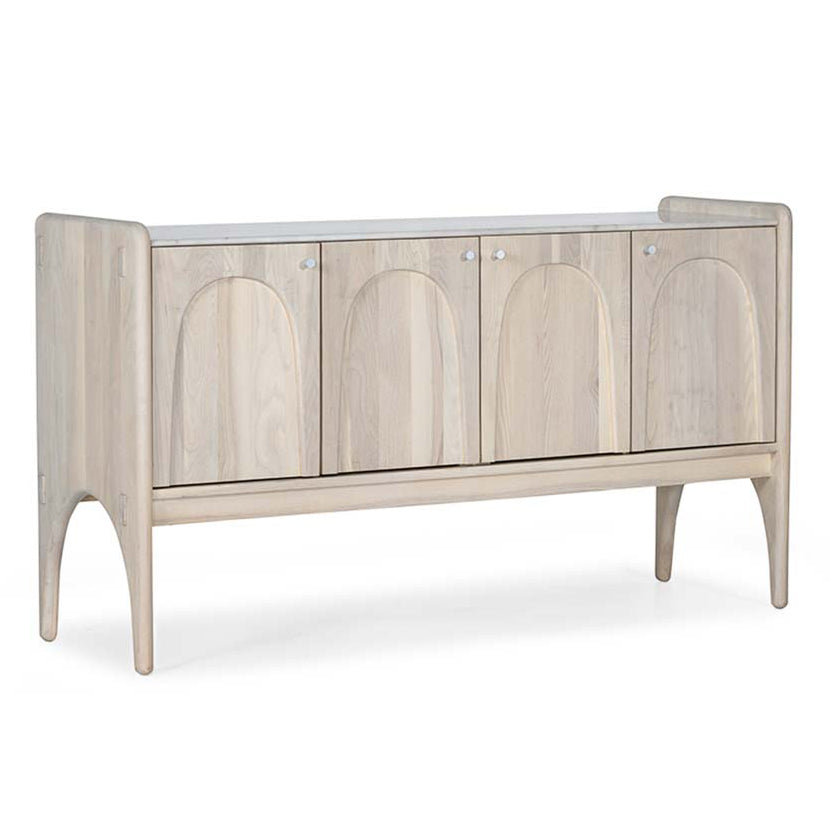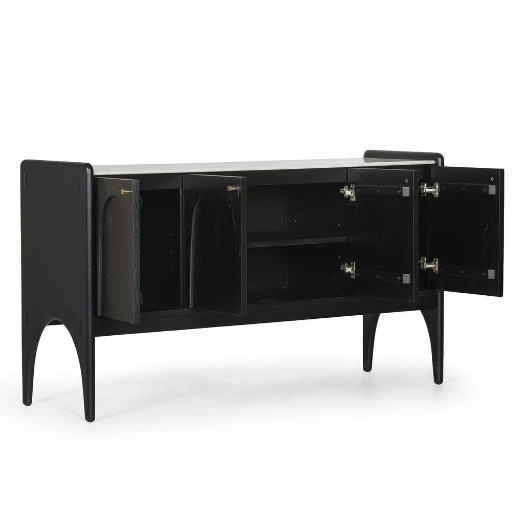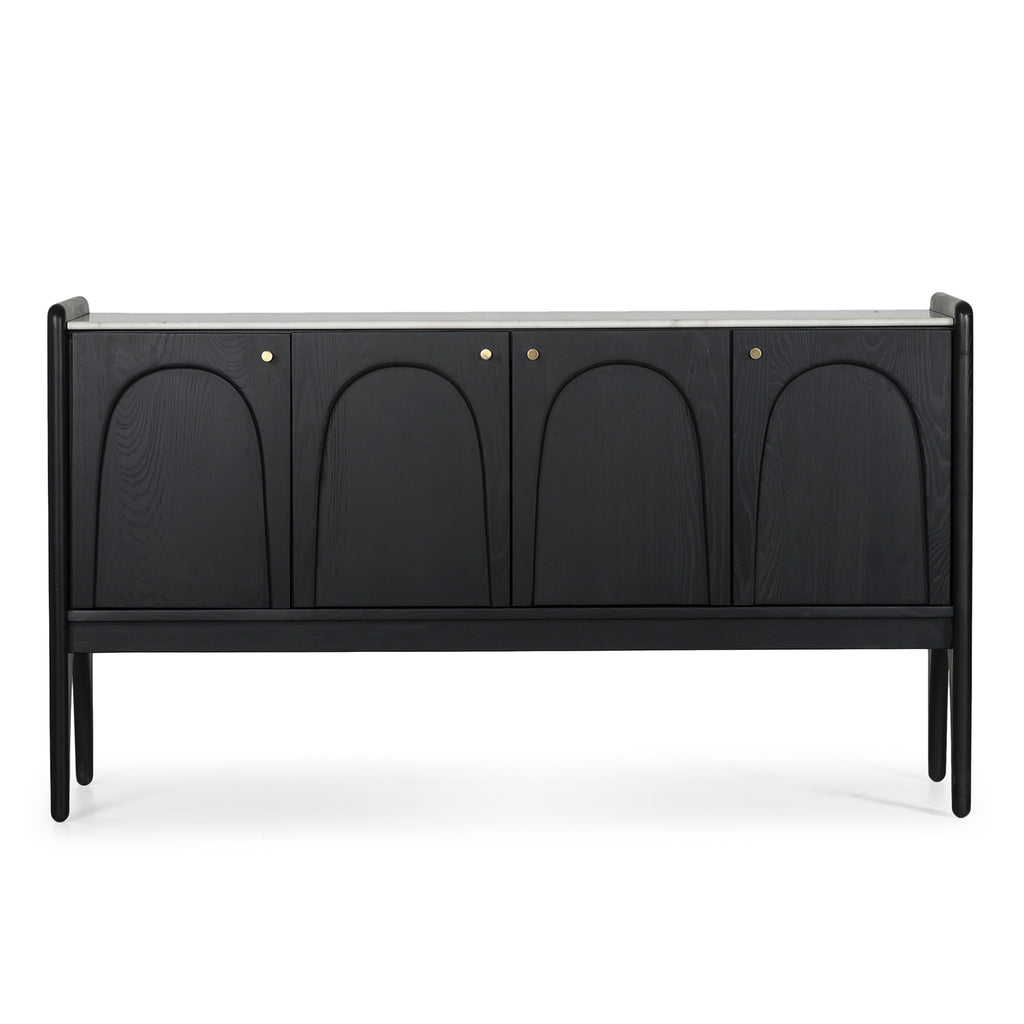 Inspired by arches from architectural landmarks, the Union Home Luna sideboard features dramatic geometry as both its structure and aesthetic. 4 doors with a raised arch motif conceal 3 storage compartments, the top is crafted from a solid stone panel.
