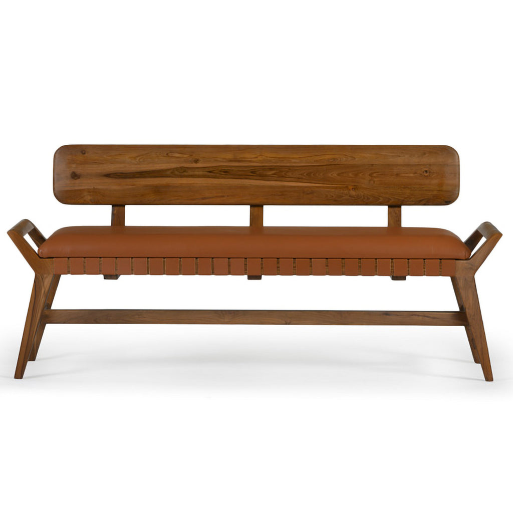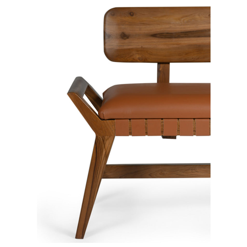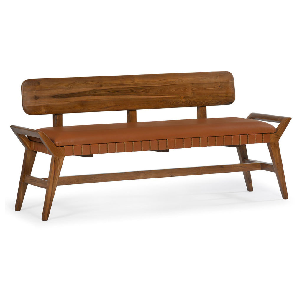 The Roberston bench is crafted from solid recycled teak, salvaged from demolished Indian buildings. The sculpted back is comfortable and supportive, along with the seat cushion, upholstered in top grain leather.