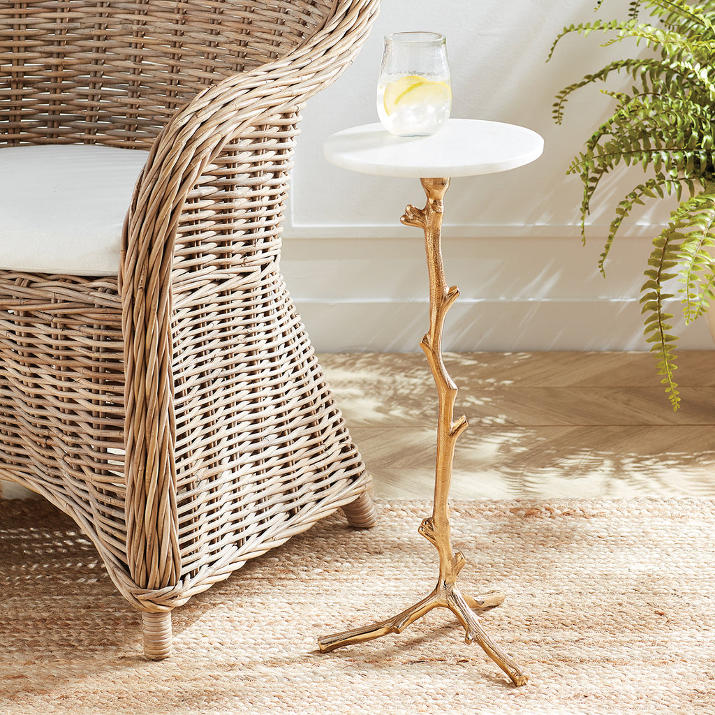 With a sturdy cast-aluminum base made to look like a meandering vine and a petite marble surface, this versatile accent table is made for modern living. Move it effortlessly within your space to stylishly hold a drink, dessert plate or even a lap top.
