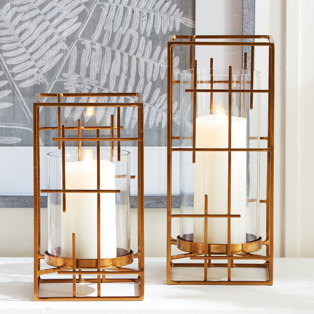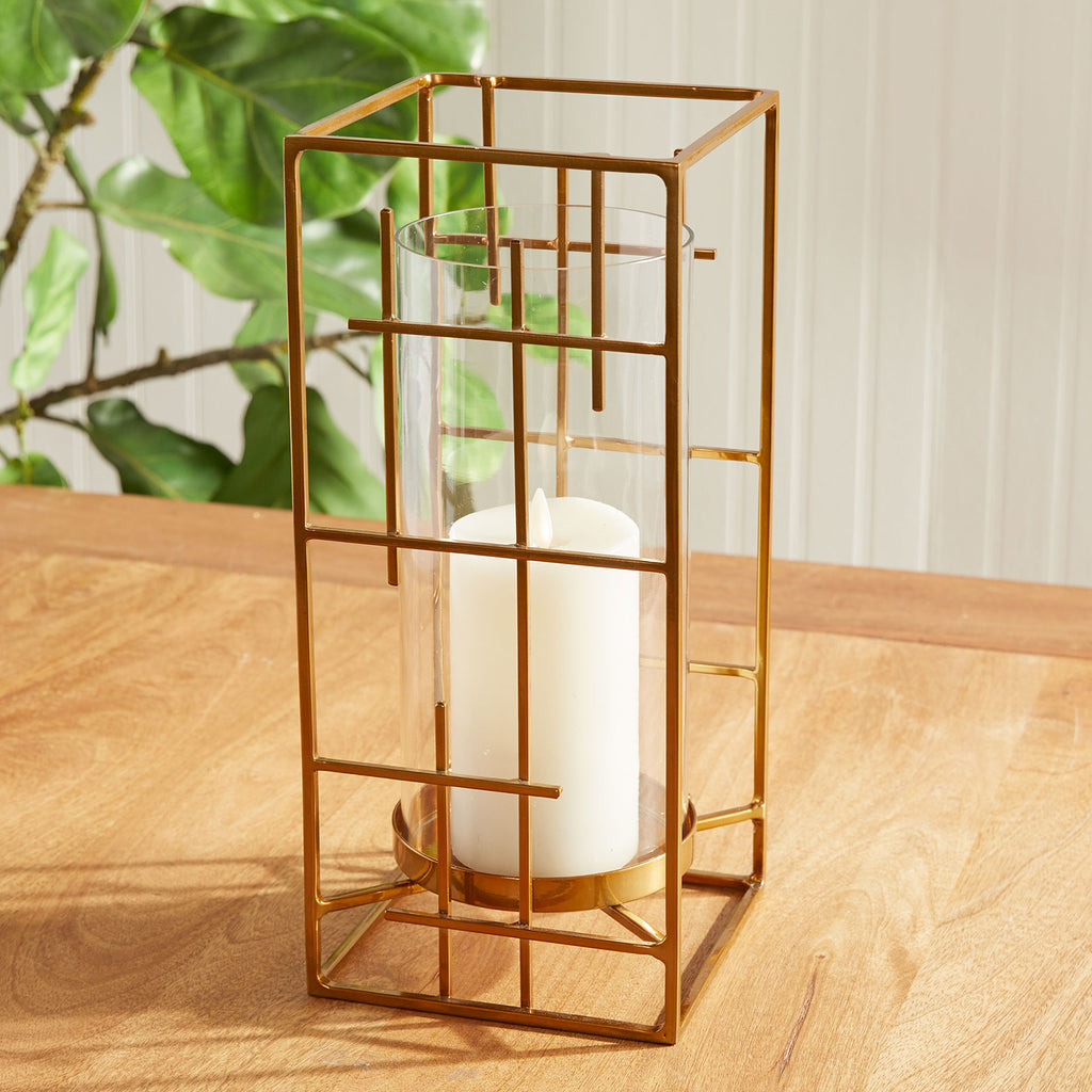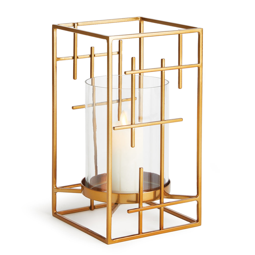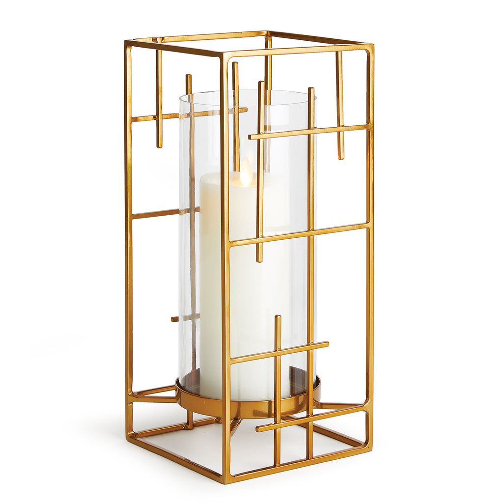 With it's Mondrian-inspired geometric lines and squared, graphic shape, this hurricane is the epitome of mod. Add a candle and enjoy the warm glow.
