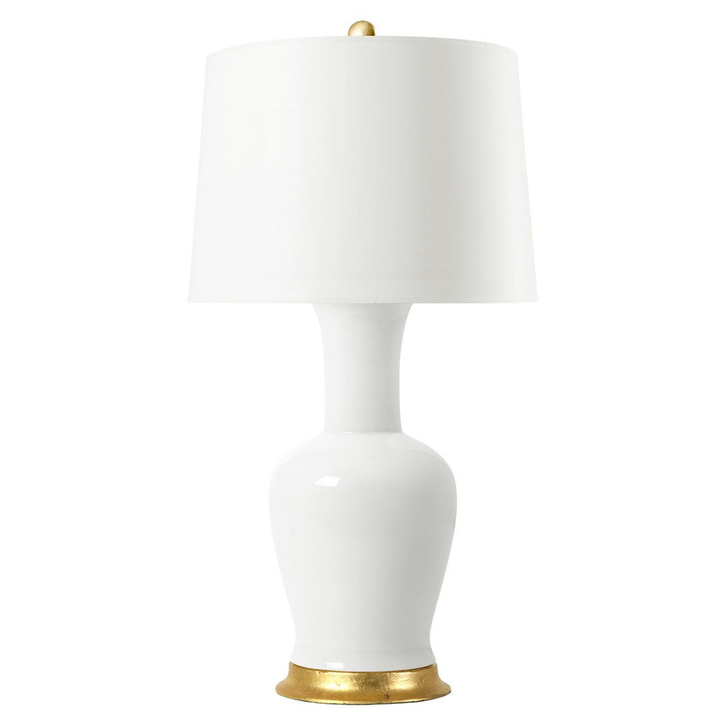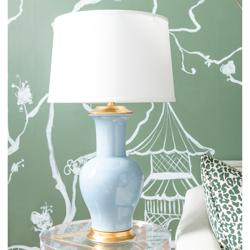This elegant, amphora-shaped V&H Acacia lamp in artisanal, high-fired porcelain delivers soft color, updated styling and a modern spirit to a traditional form. The base and finial are gold leafed. Shade sold separately.