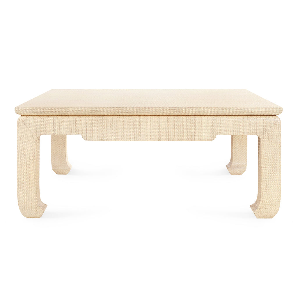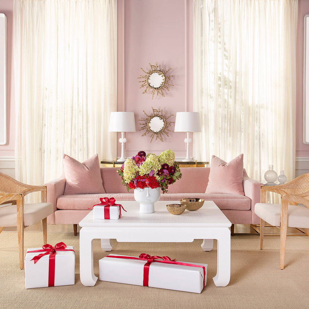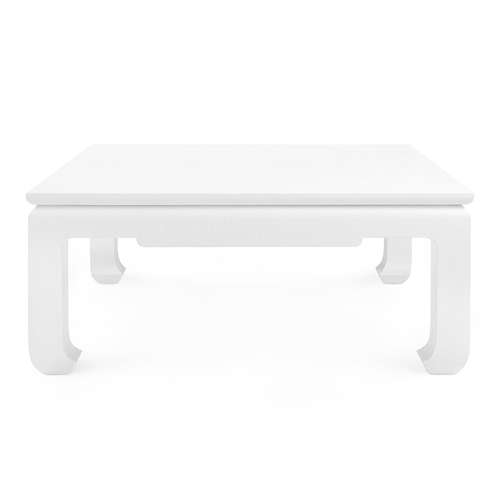 With new proportions and thicker chow feet legs, the Bethany Square Coffee Table from V&H is a substantial piece. Finished in a textural, heavy lacquered linen or grasscloth, the Bethany has a chunky appearance that almost reads like plaster. This table is best used with a sectional or corner sofa, as its equal sides and 90-degree angles tuck into tight spaces better than a rectangle. The Bethany coffee table—which comes in a white or natural color—is equally welcomed as a neutral moment in a beachy, coastal room like a pool house or as the centerpiece of a casual, brightly colored sunroom. A pared-down version of modern Asian flair, the Bethany Collection is significant in a room and packs a major punch.