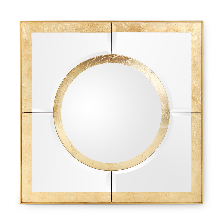 The V&H Grayson mirror has a central convex mirror surrounded by 4 flat sections. All of the mirrored elements are bordered in gold using verre eglomise, which is the artisanal technique for hand-applying gold leaf to the back of glass. These mirrors look stunning either lined up or in a block of 4.
