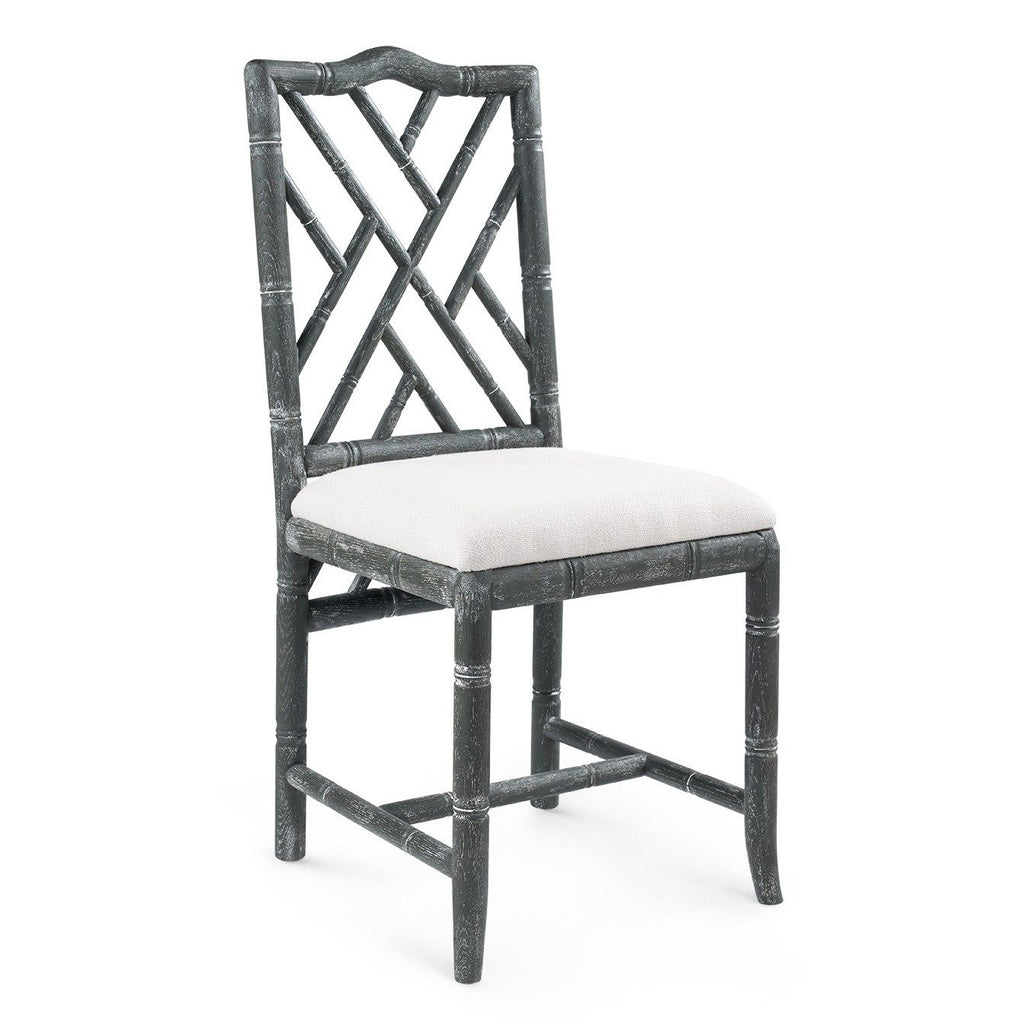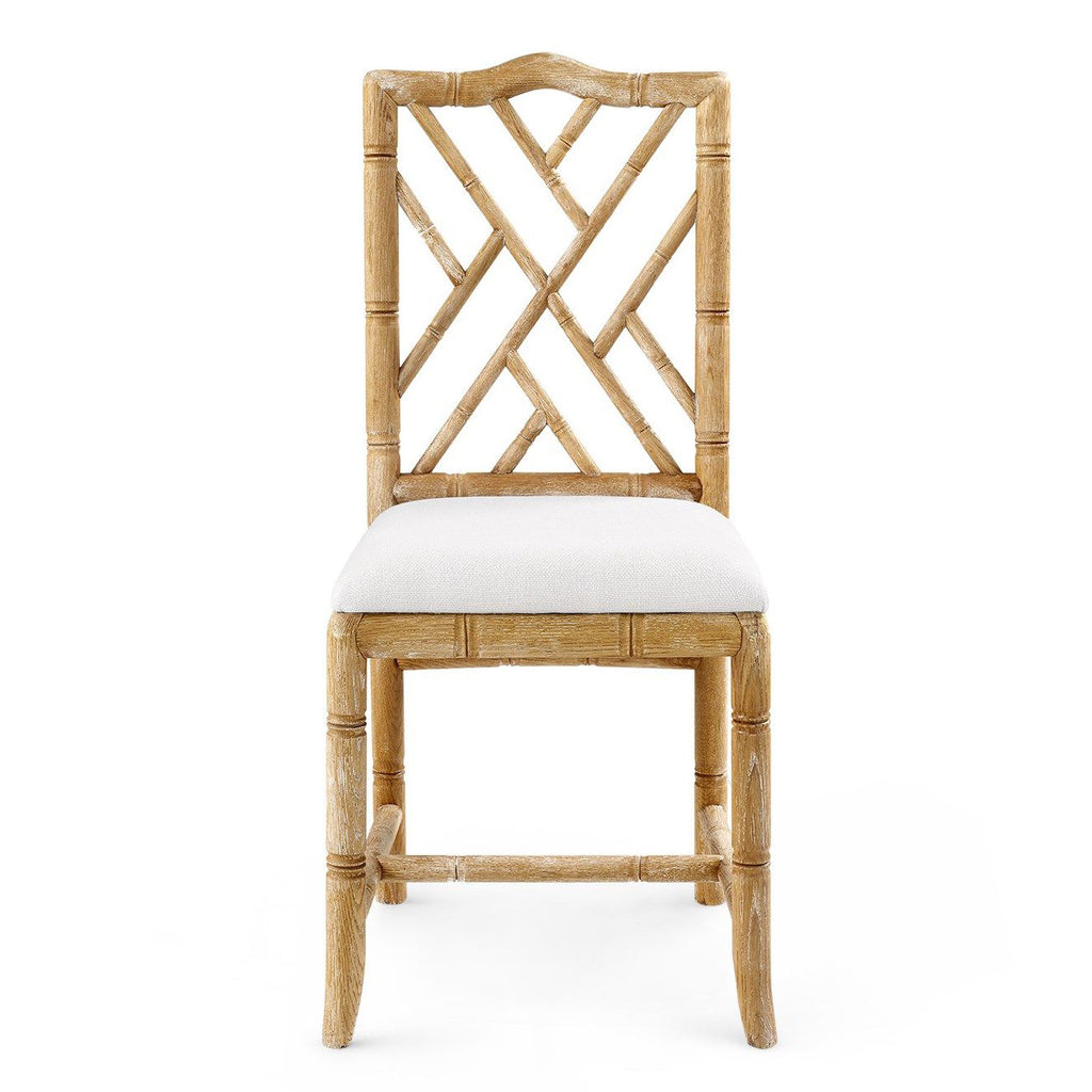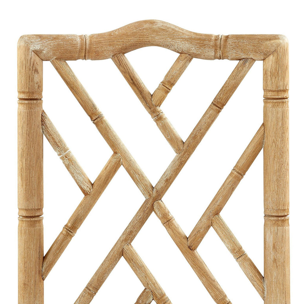 V&H Hampton Chairs are handcrafted of solid oak in a modernized version of Thomas Chippendale’s Chinoiserie style. The pretty back features carved faux bamboo fretwork. Other great details include faux bamboo frames, legs that nip out in the front and four decorative stretchers. Simple drop-in linen upholstery recovers easily and beachy, limed oak finishes bring nature indoors.