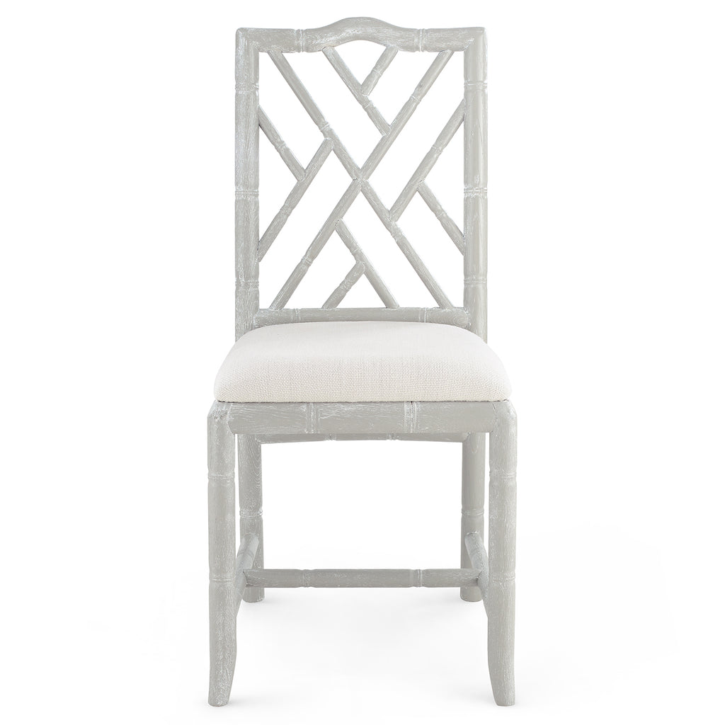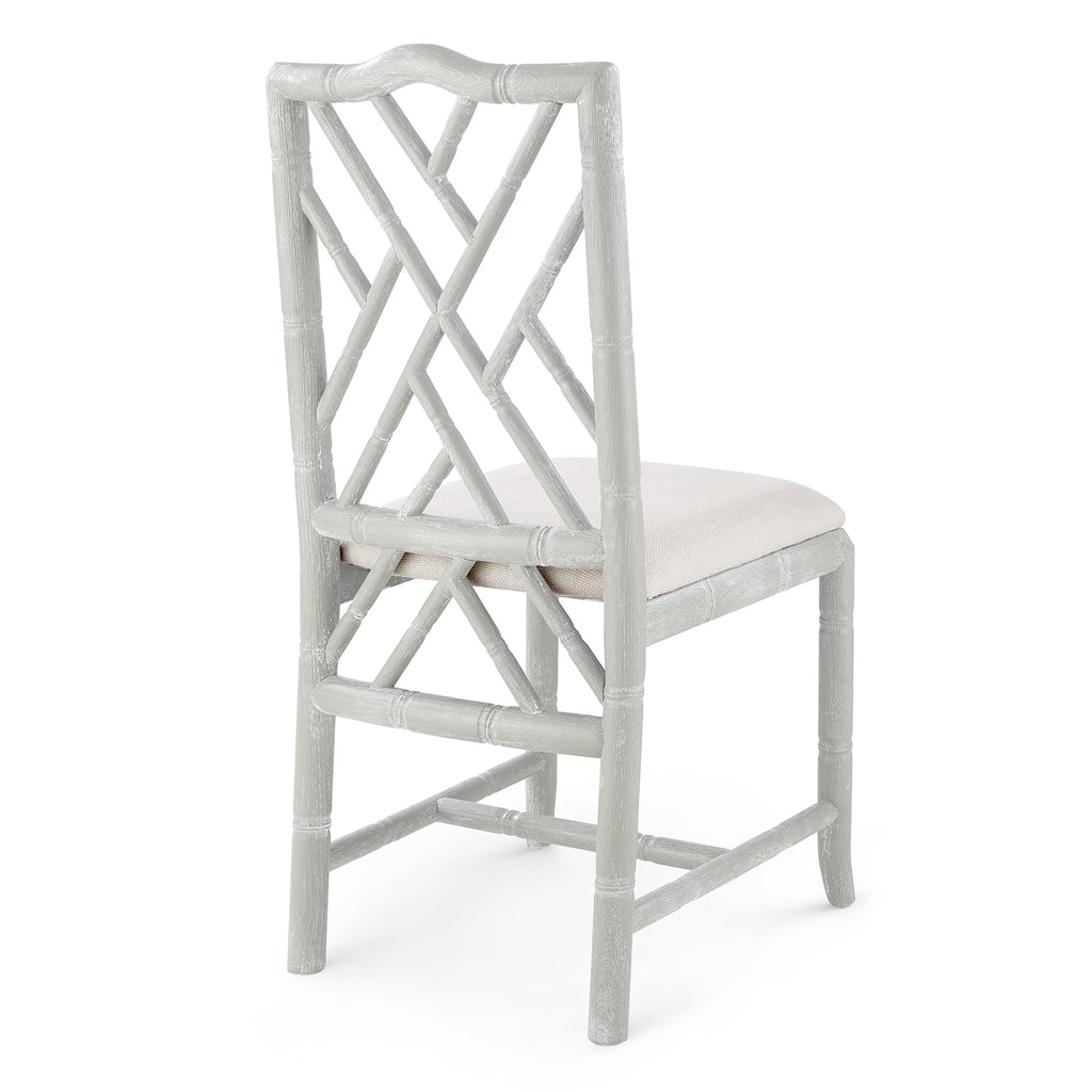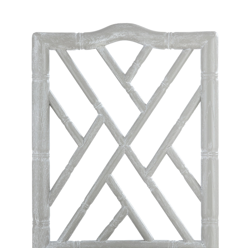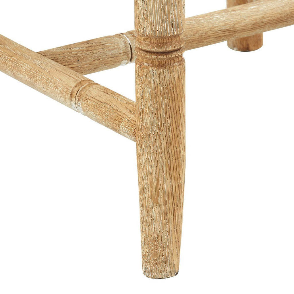 V&H Hampton Chairs are handcrafted of solid oak in a modernized version of Thomas Chippendale’s Chinoiserie style. The pretty back features carved faux bamboo fretwork. Other great details include faux bamboo frames, legs that nip out in the front and four decorative stretchers. Simple drop-in linen upholstery recovers easily and beachy, limed oak finishes bring nature indoors.