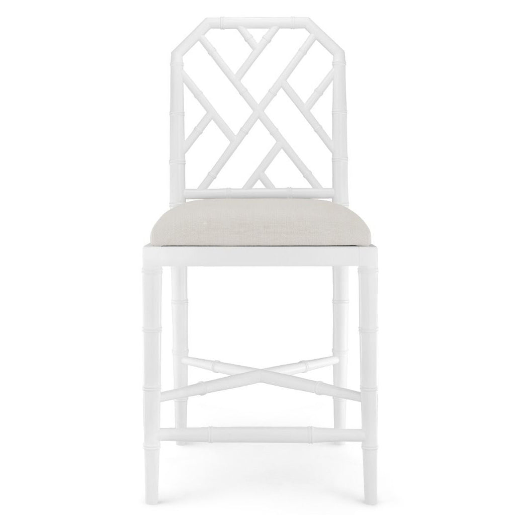 The Jardin Collection revisits one of V&H’s beloved design motifs, inspired by classic Chinoiserie. A rich lacquered finish adds to the sophistication of the design, which sees solid mahogany artisanally hand-carved to resemble bamboo. Decorative lattice fretwork, diagonal stretchers, and gently tapered legs add visual and structural interest while maintaining an air of elegant simplicity. Completed with a linen drop in cushion, the Jardin Counter Stool feels at once relaxed and undeniably upscale. Either at a kitchen island or home bar, this stool invites you to sit back in style.