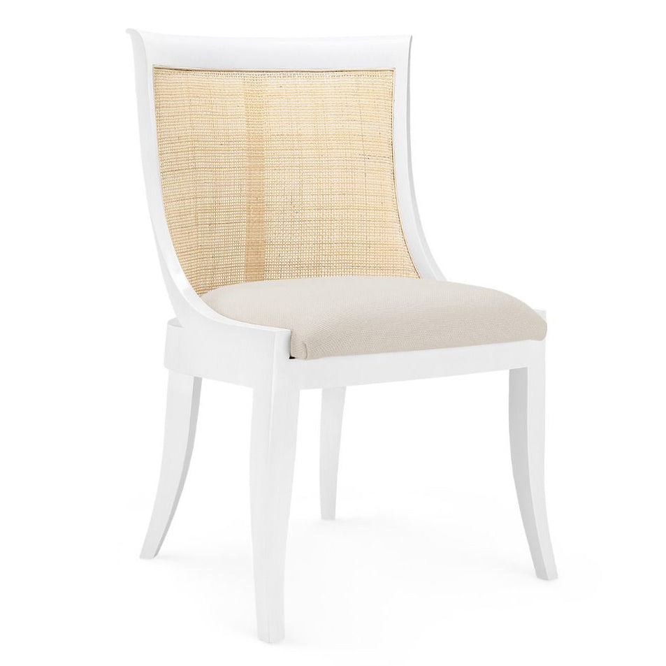 • Material: Pigmented Lacquered Mahogany or Clear Lacquered Cerused Cape Lilac Mahogany, Linen, Hand-Woven Caning