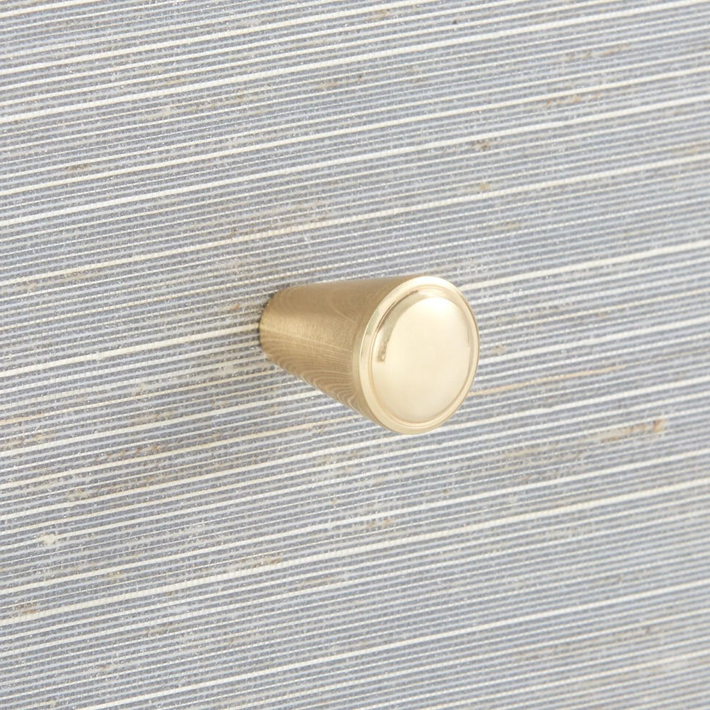 We've wrapped the V&H Pascal in finely woven grasscloth which has been sealed with clear lacquer to protect and preserve it's beauty. With our customary attention to the details, we've aligned the direction of the weave so that it flows seamlessly around every side. It's elegant thin lines and hand-cast brass accents and sabots elevate its look and impart a sense of elegance.