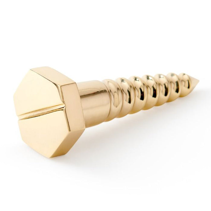 The V&H Screw Statue is a unique decorative sculpture for side tables, coffee tables or a paperweight on a desk. We've taken something ordinary and by enlarging it, casting it in brass finish, and polishing it to a reflective sheen, we brought out the innate interest and beauty of its design. We've rendered something, which ordinarily goes unnoticed, into little golden treasures of arresting beauty. Measuring roughly five and a half inches, the Screw has a one-of-a-kind allure.