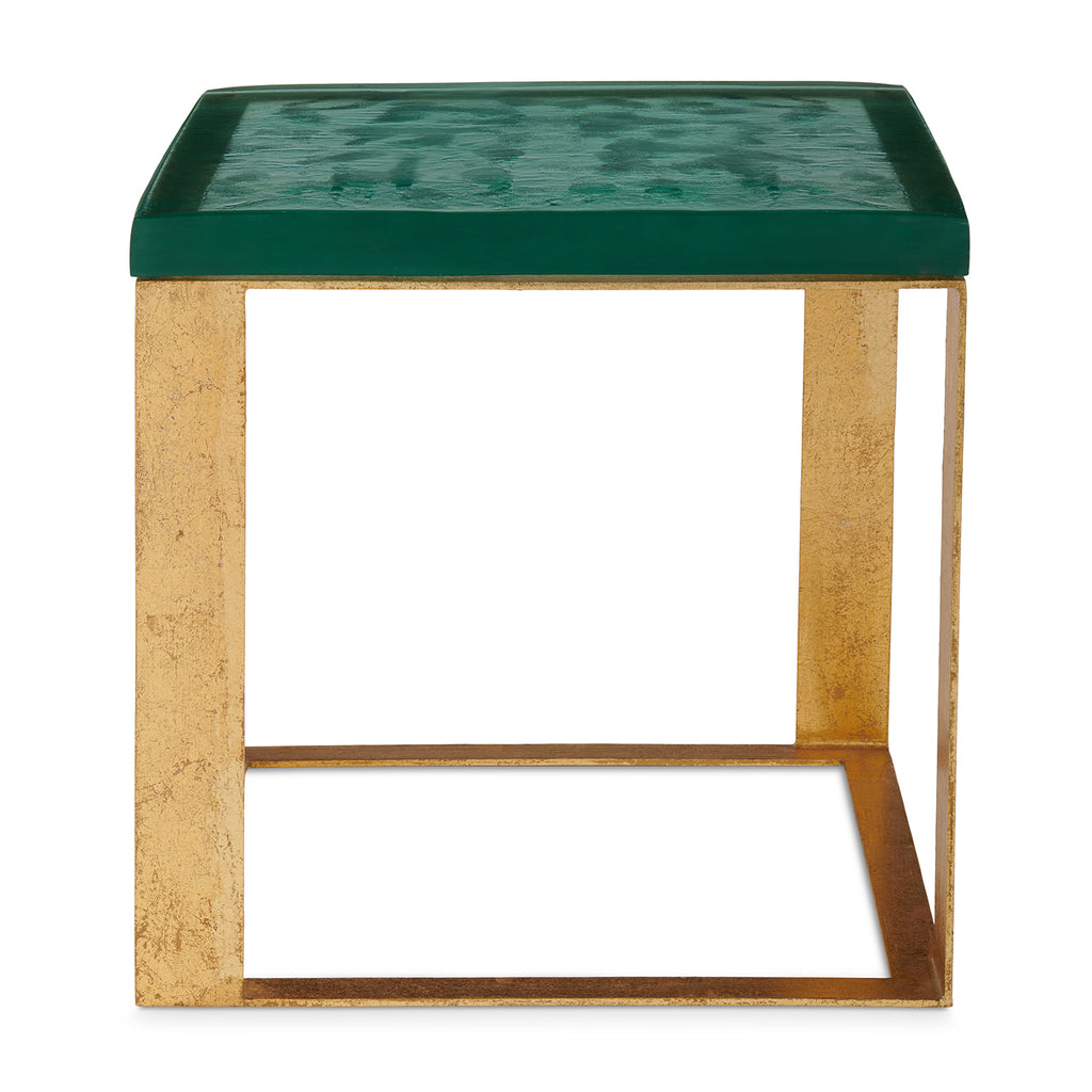 Calling all connoisseurs, collectors, and those that appreciate attention to detail: Our Lever Side Table is truly one of a kind. Inspired by the famed Lever Building in NYC, this minimal yet bold side table harkens back to the 1950’s Mad Men era. An idea modernized by our designers, this table is topped with thick fused glass. This sea-glass-like top floats over a base of turned legs and is elegantly finished with hand-applied gold leaf. The personal touch of the artisan is evident in that no piece is exactly the same. The Lever is a table with old-world scale and modern-day design that would work marvelously between two club chairs, as an occasional table, or even as nightstands beside a low modern bed.