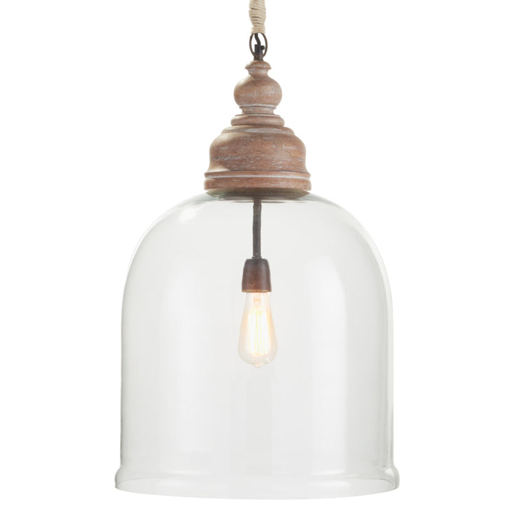 The classic profile and wide rimmed glass design make this pendant a classic choice. The whitewashed, natural wood is perfect for coastal cottage or any clean white space.