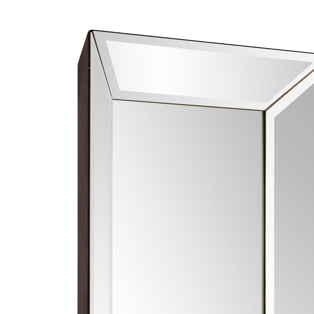 This striking piece features rectangular mirrored frame that is pitched, flaring away from the wall. Each mirrored section is beveled adding to its style and beauty. It is a perfect focal point for an entryway, bathroom, bedroom or any room in your home. D-rings are affixed to the back of the mirror so it is ready to hang right out of the box! The Vogue Mirror can be hung in a horizontal or vertical orientation.