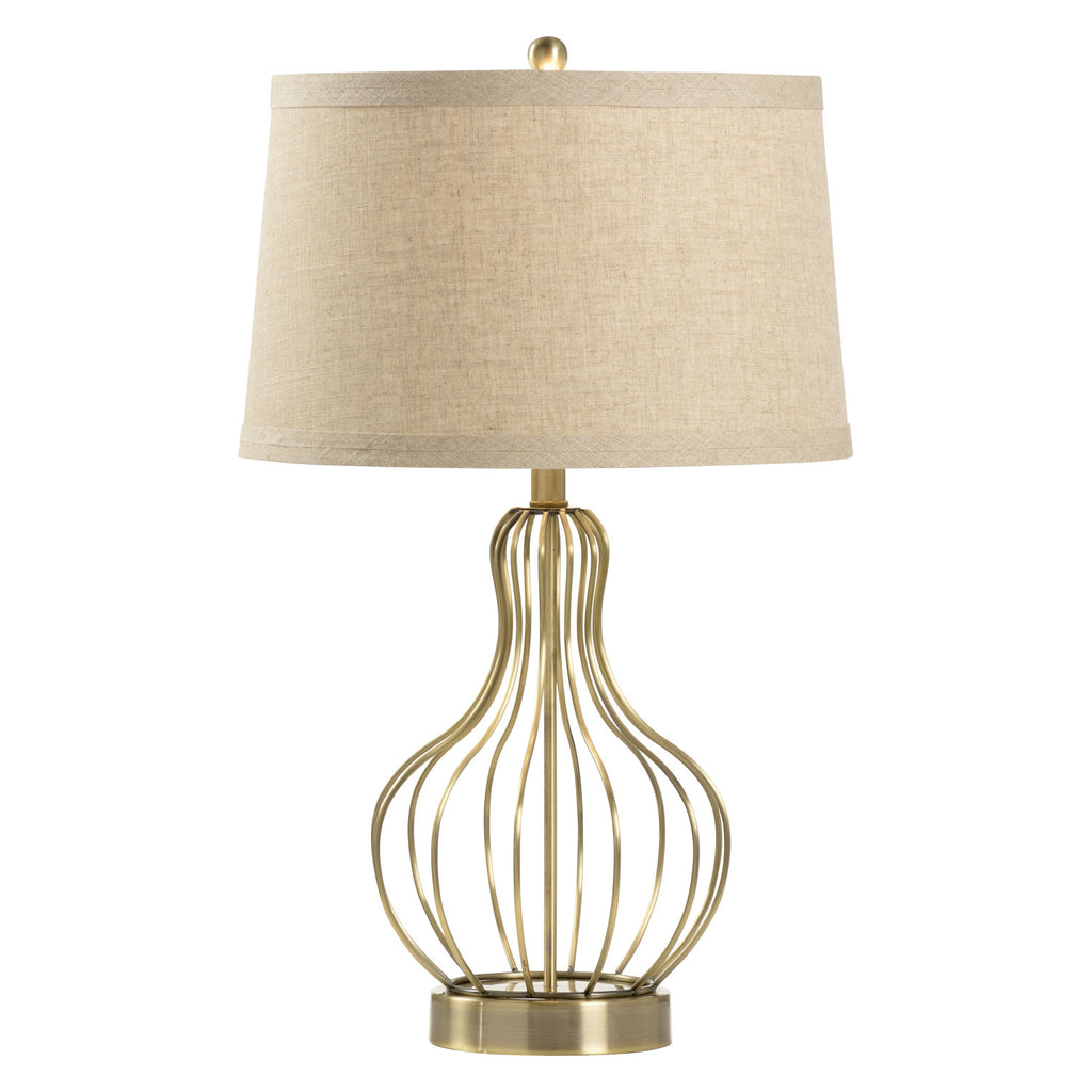 This Wildwood table lamp brings gorgeous illumination to your home. A beautiful accent for a living room or bedroom, this chic lighting fixture delights with timeless glamor. Antique brass finish on iron. USB and data port on base.