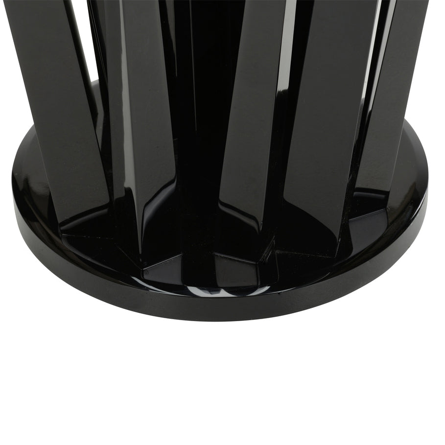 Inspired by the crystals inside a geode, this striking end table is crafted of clear acrylic. This unique design was fashioned for a sitting area in a contemporary home decor. The round, tempered glass top is the perfect size to hold a drink and your reading materials beside a sofa or arm chair.